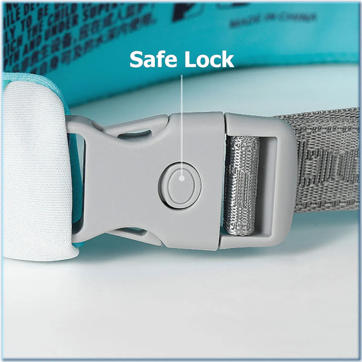 The safety lock prevents accidental unbuckling.