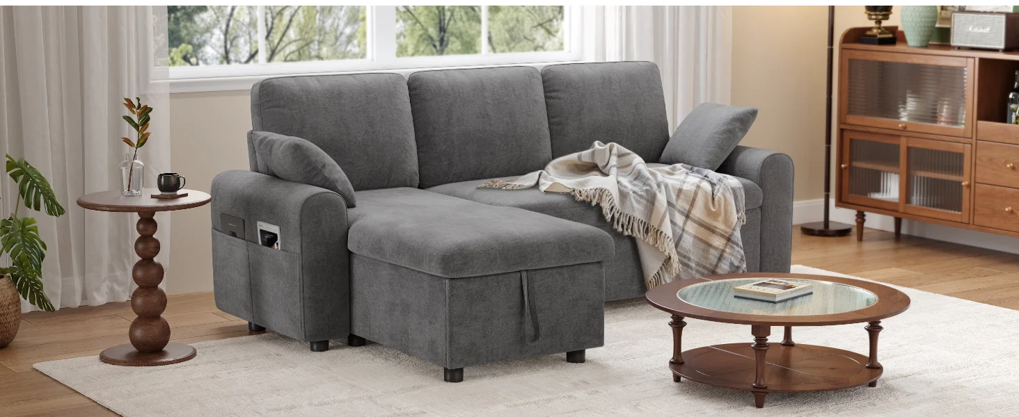 【Spacious Storage Chaise】 This couch with pullout includes a large storage chaise—just lift the ring to organize pillows, books, and more. A smart addition to your sofa bed sleeper for keeping clutter at bay.