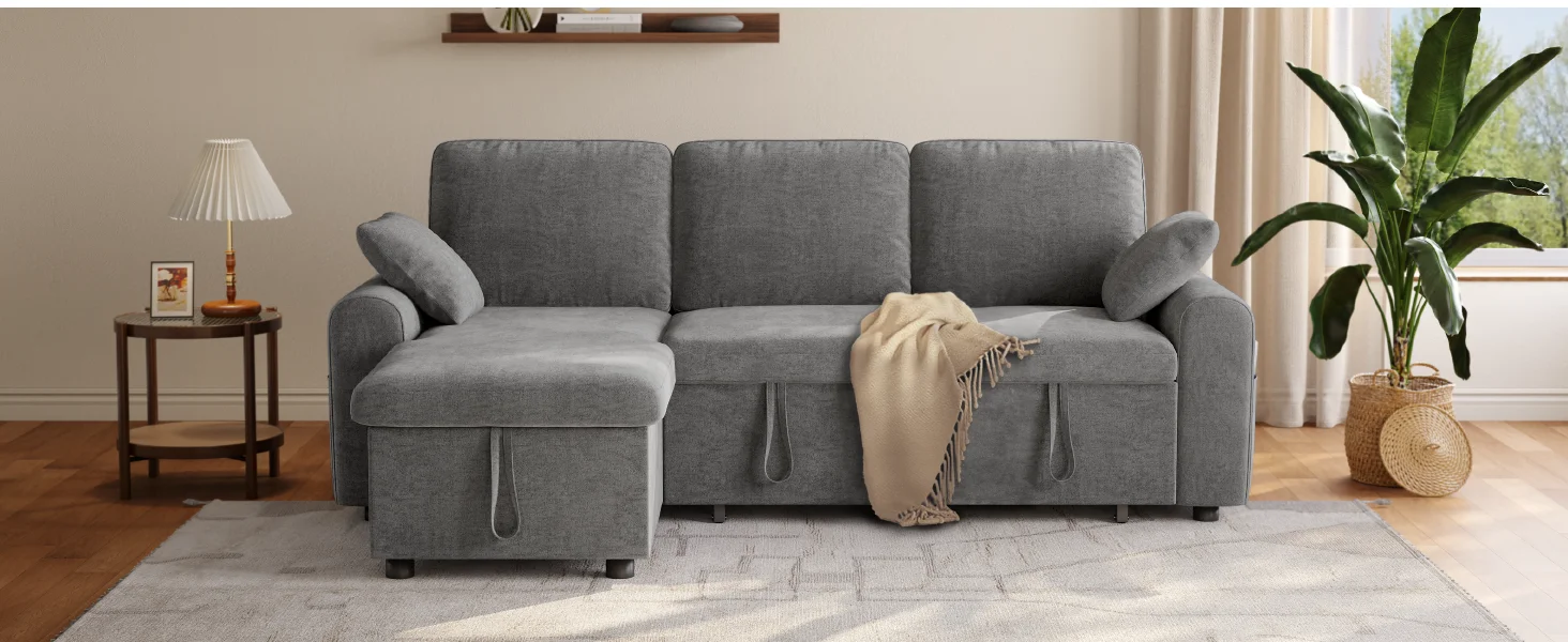 【Convertible L Shaped Sectional】 Transform this L-shaped couch into a couch bed in seconds! Gently pull the hidden lever under the cushions, and the pull out sofa bed becomes a plush sleeping space—effortless setup for overnight guests.