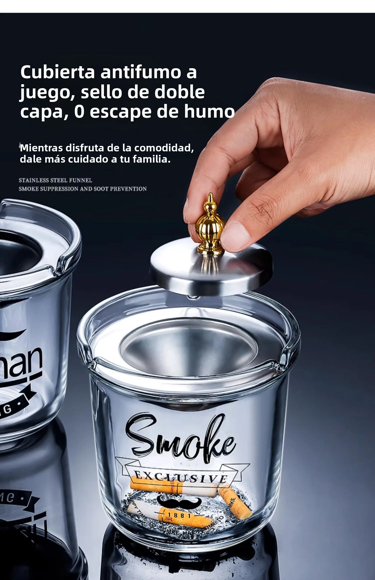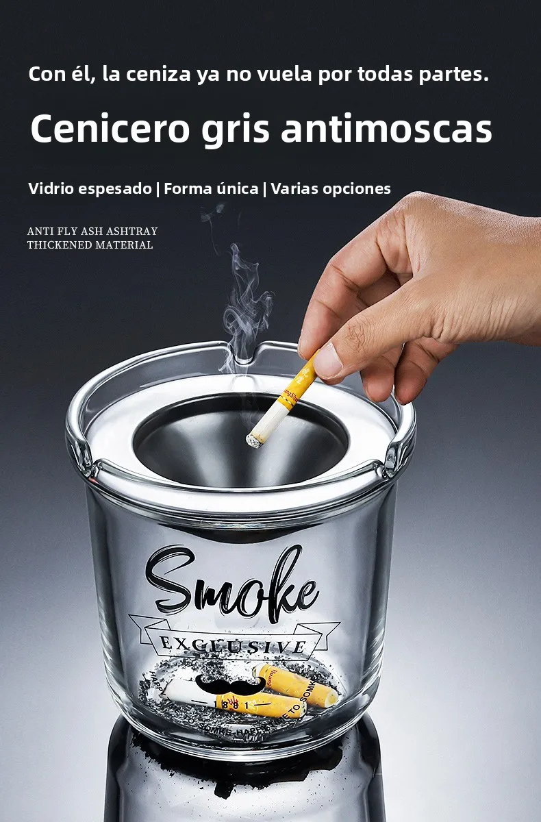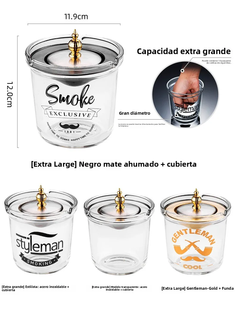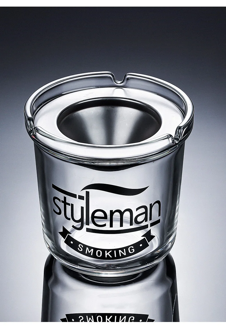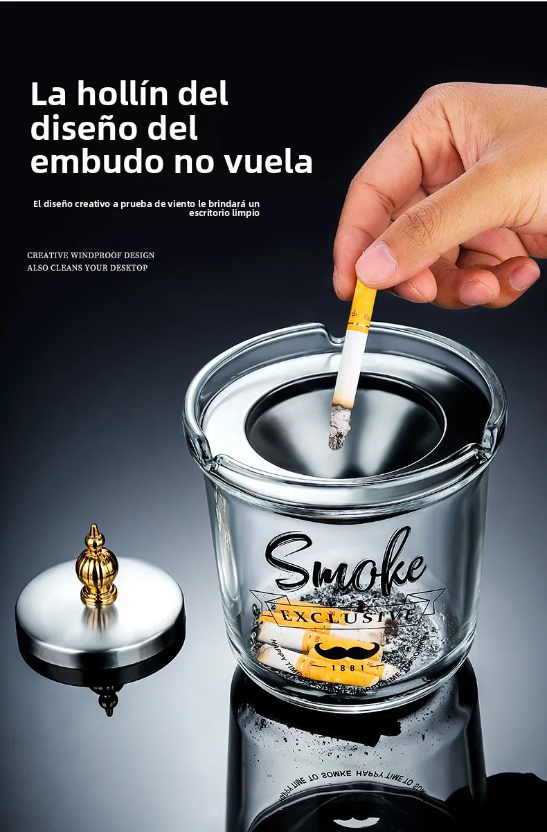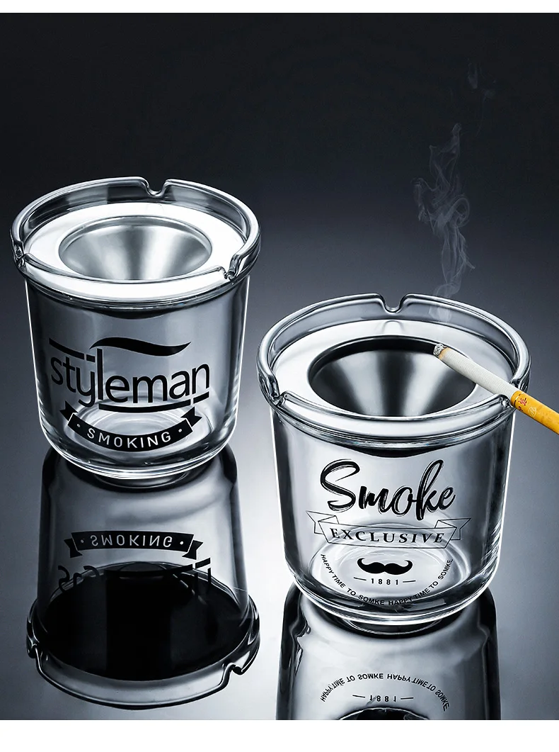 Large Size Creative Glass Ashtray with Lid Office Use Stainless Steel Funnel Windproof High End Home Decorative Ashtray