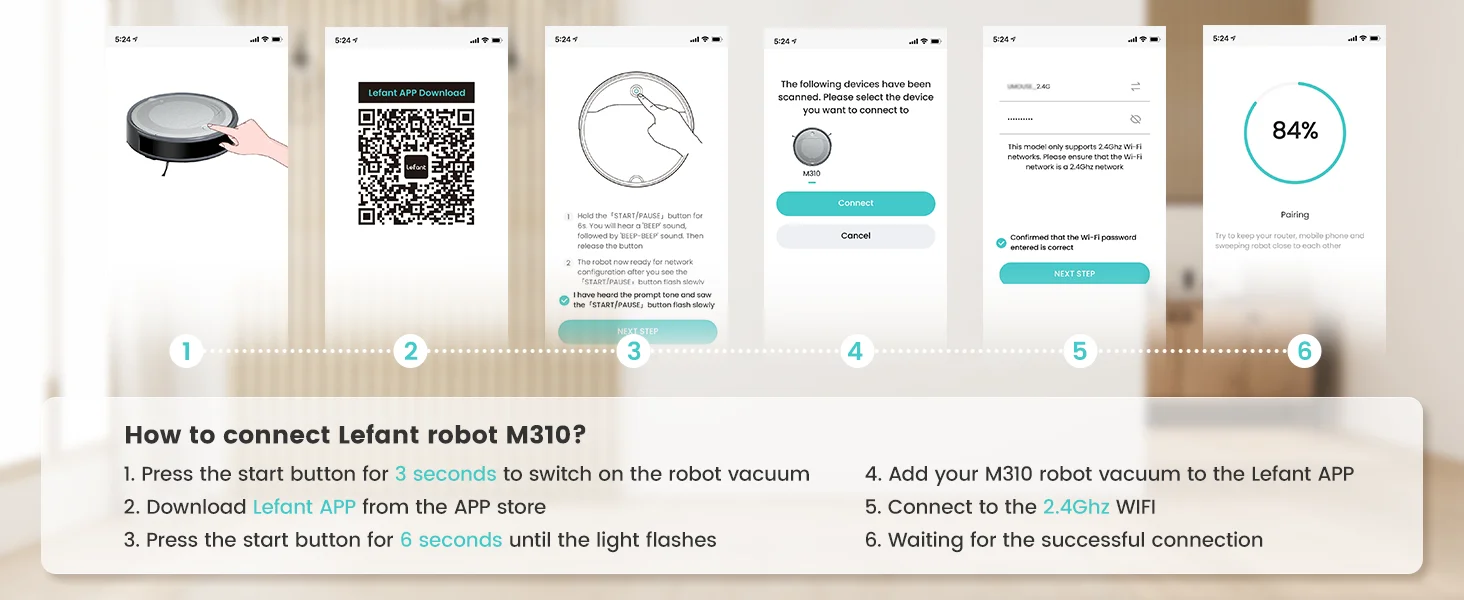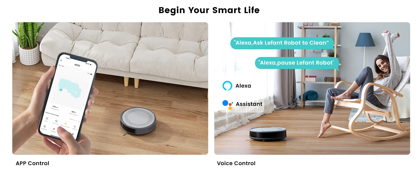 Easily control the M310 robot vacuum with the Lefant APP, Google Home, or Alexa voice commands,providing a convenient cleaning experience at your fingertips(Note: The app supports only 2.4GHz WiFi). It also supports a remote control (B0BZYZN12Q), making it user-friendly for parents and elders.