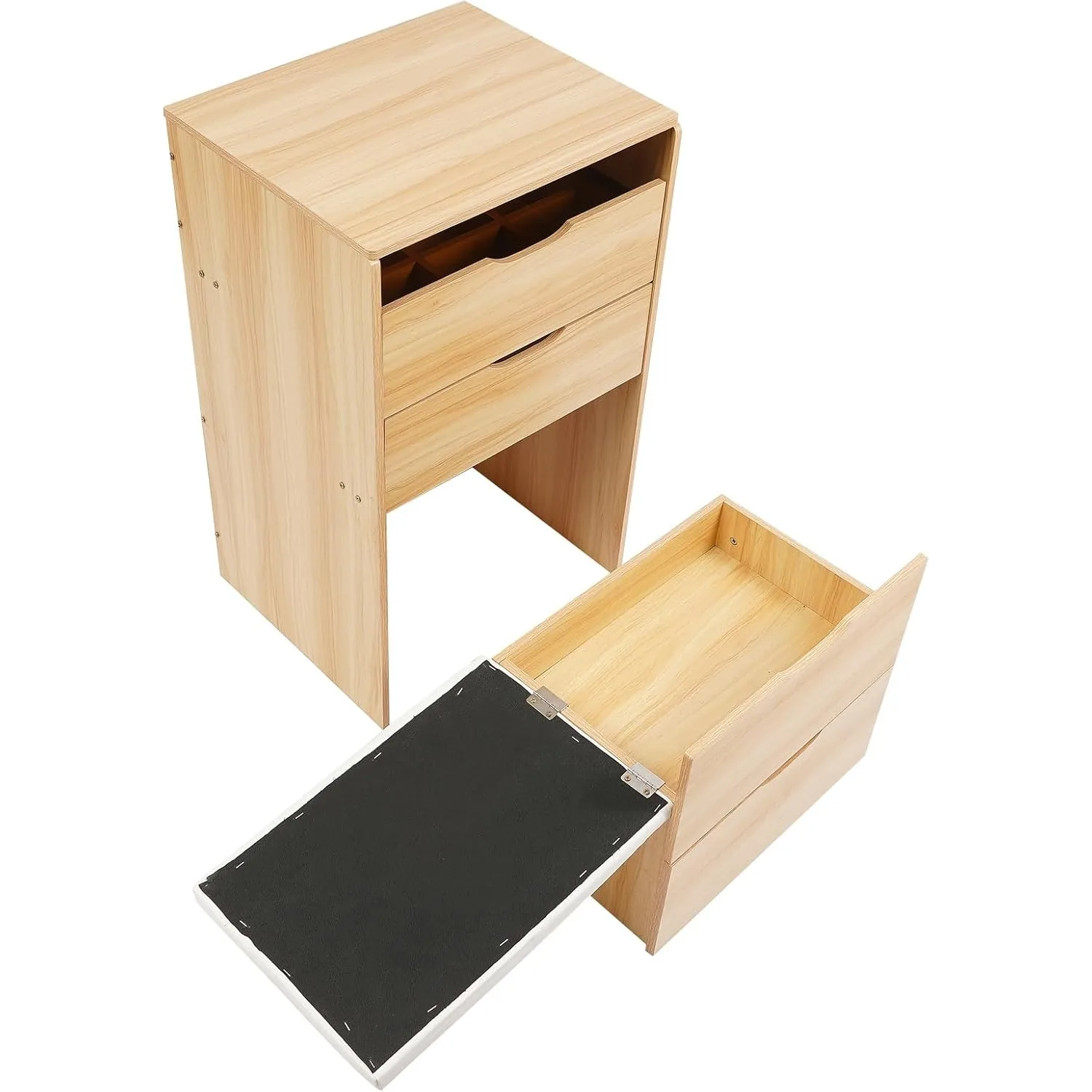 Ample Storage Space: This product comes with two drawers and a stool with a large storage drawer. When you flip the top of the desk, there is one more hidden storage space for you. You can keep your daily cosmetics and makeup tools such as eye shadows, perfumes, and brushes organized for a tidy living space and a convenient makeup process.
