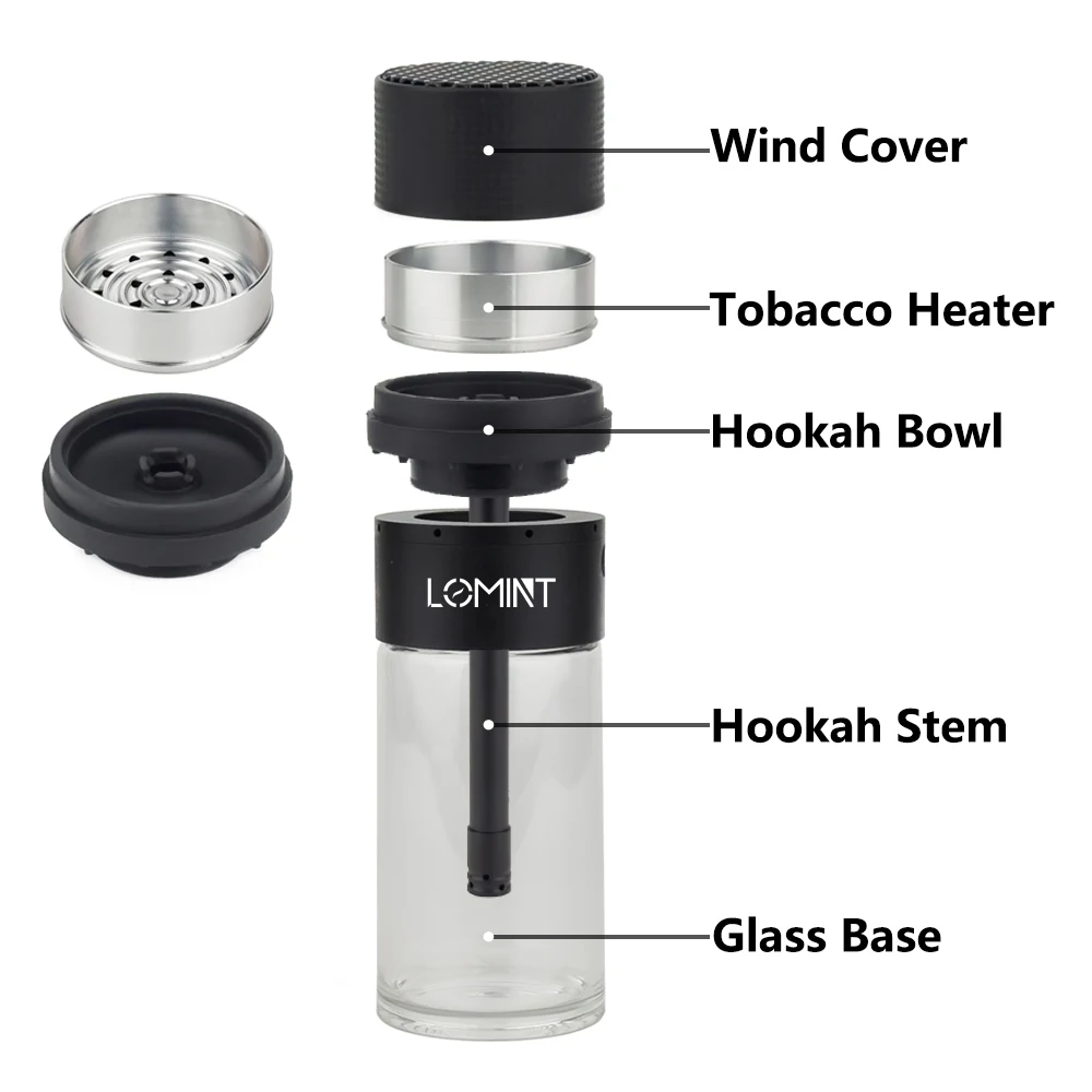 LOMINT Portable Cup Hookah Shisha Set With Glass Base Car Narguile Chicha Full Complete Gift Box Packing