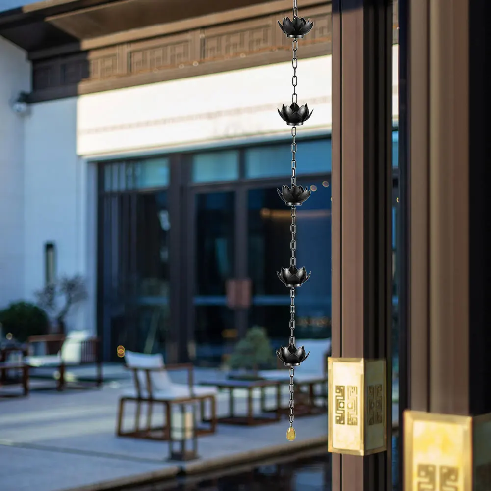 120CM Lotus Rain Catcher Chain Decorative Rain Chain Outdoor Garden Hanging Rain Catcher Cups for Gutters Downspouts Outside