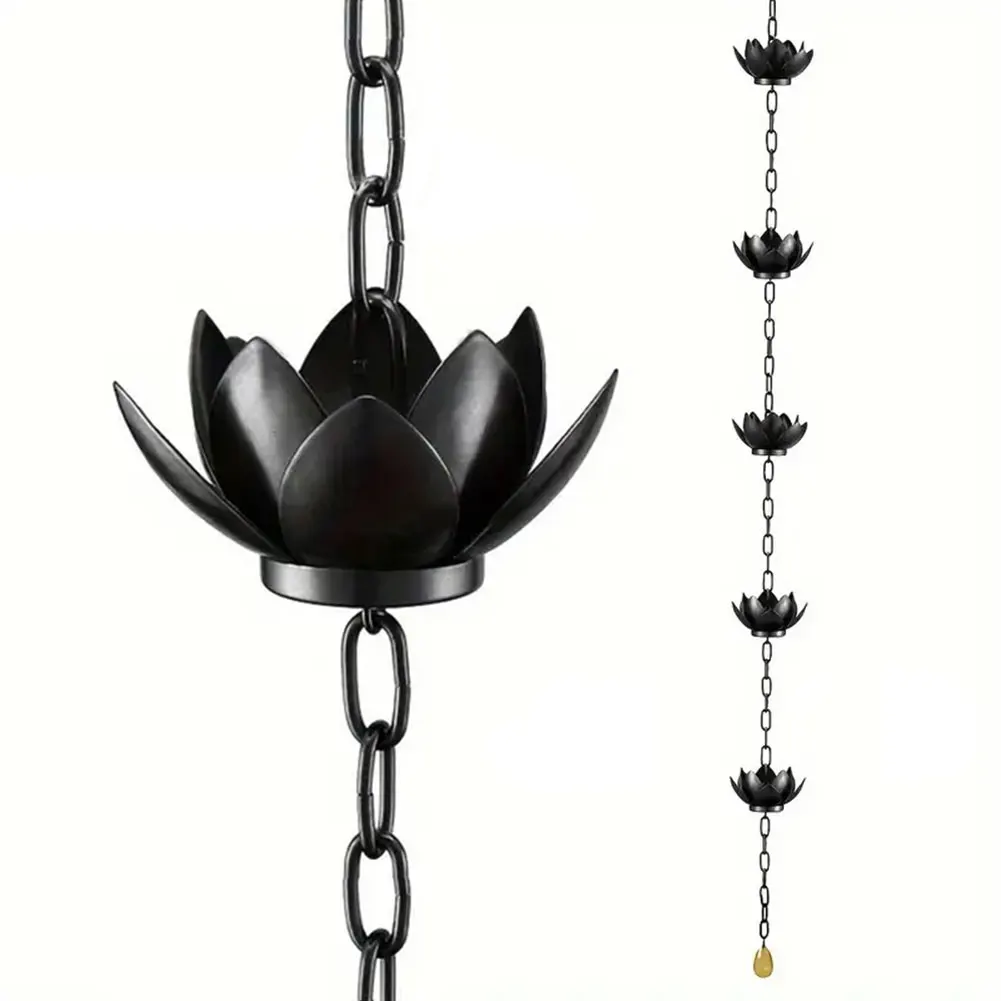 Features: 1.Elegant Design: Enhance your home's aesthetic with this stunning rain chain. Made to replace unsightly downspouts, it elegantly catches and guides rainwater from the roof to the ground with soothing sounds, using a stylish rain catcher chain. 2.Easy Installation: Simplify your setup with no tools required. The flexible system lets you easily connect the rain chain cups to gutters, reducing splashing. Adjust positions effortlessly for optimal placement and beauty. 3.Adjustable Length: Customize your decorative rain chain according to your architectural needs. Easily add or remove rain catcher links to fit the desired length, offering both functionality and design versatility. 4.Sturdy Construction: Built from high-quality iron, this outdoor garden hanging rain catcher cups withstand severe weather. Enjoy lasting performance without worrying about wear, rust, or damage caused by storms. 5.Perfect Gift: Ideal for friends, family, or personal use, this rain chain makes an excellent gift. Replace traditional downspouts with this beautiful alternative to refresh your home's exterior charm instantly. Specification: Origin: Mainland China Size: 1200.00x85.00mm Material: Iron