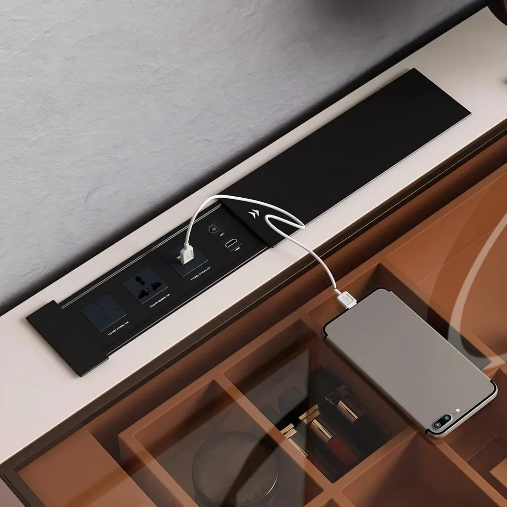• MULTI-FUNCTIONAL DESIGN: Features a dressing table with integrated power - includes 2 power outlets, 2 USB ports, and cable management holes for convenient device charging while getting ready