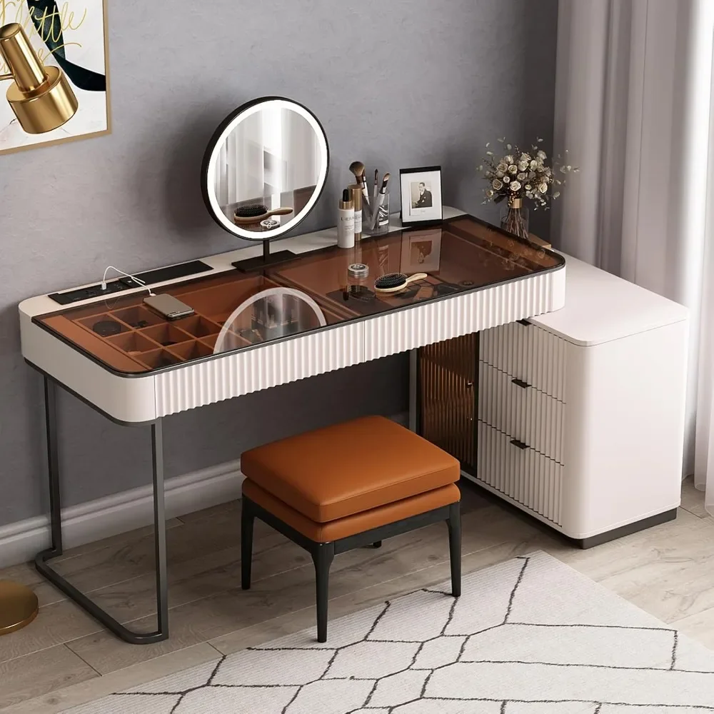 • STORAGE SOLUTION: Combines main table surface with additional sub-cabinet storage, perfect for organizing makeup, accessories, and personal items in various compartments