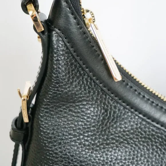 NEW WITH TAGMichael Kors Ginger Large Shoulder Hobo BagPebbled LeatherBlack100% AuthenticRetail: $398.00 Plus Tax tag said the bag is large but actually Medium Size bag***Please see the Measurement for the Size***no dust bagMichael Kors Logo On FrontZip Top ClosureGold Toned HardwareCustom Fabric Lining1 Zipper Pocket2 Slip pocket12" W x 8"H x 5"DStrap: 10"Very Clean, Smoke-Free and Pet-Free Environment