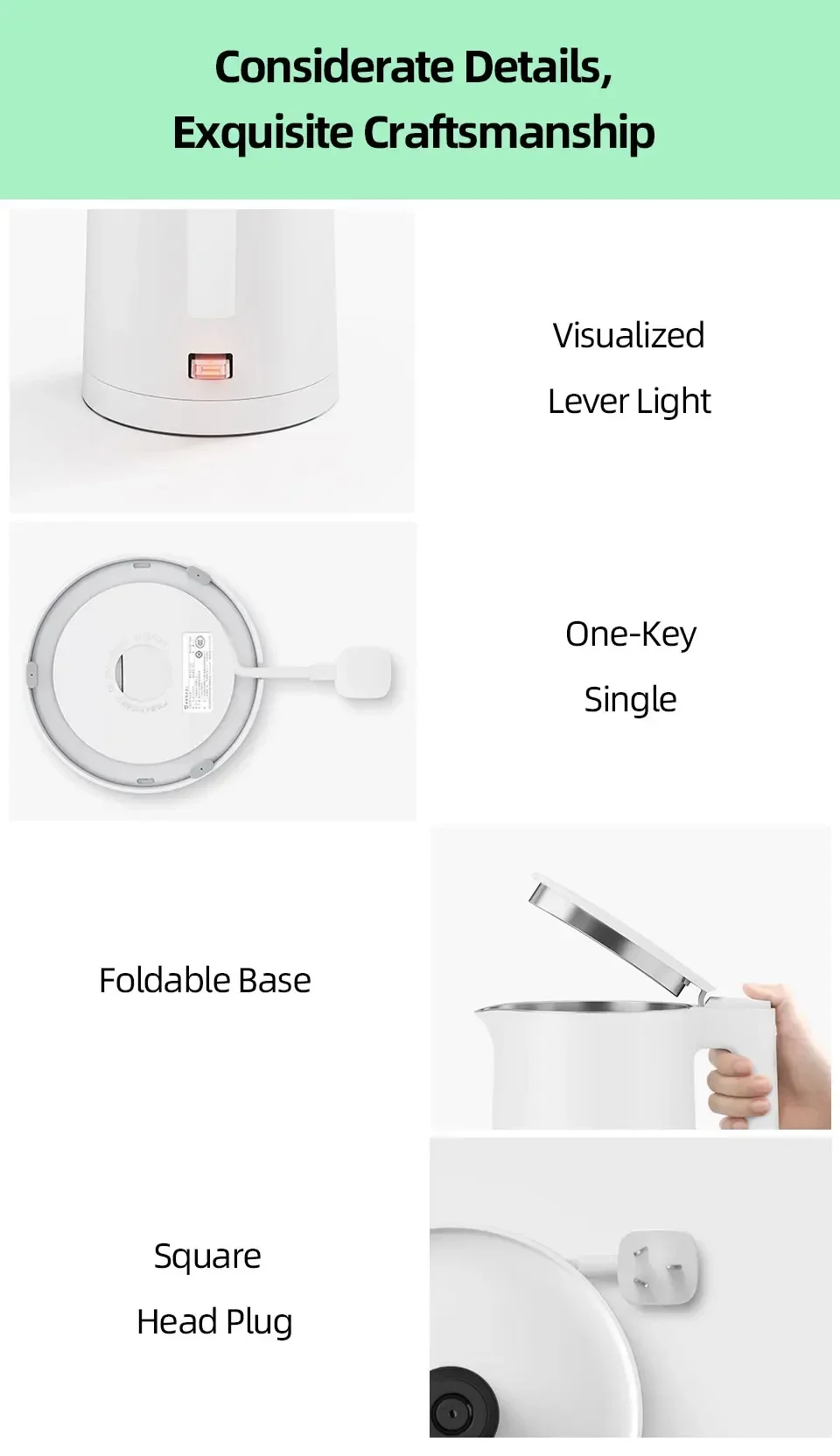 Material: Stainless steelMade of high-quality 304 stainless steel, this electric kettle is durable and rust-resistant, ensuring long-lasting use.