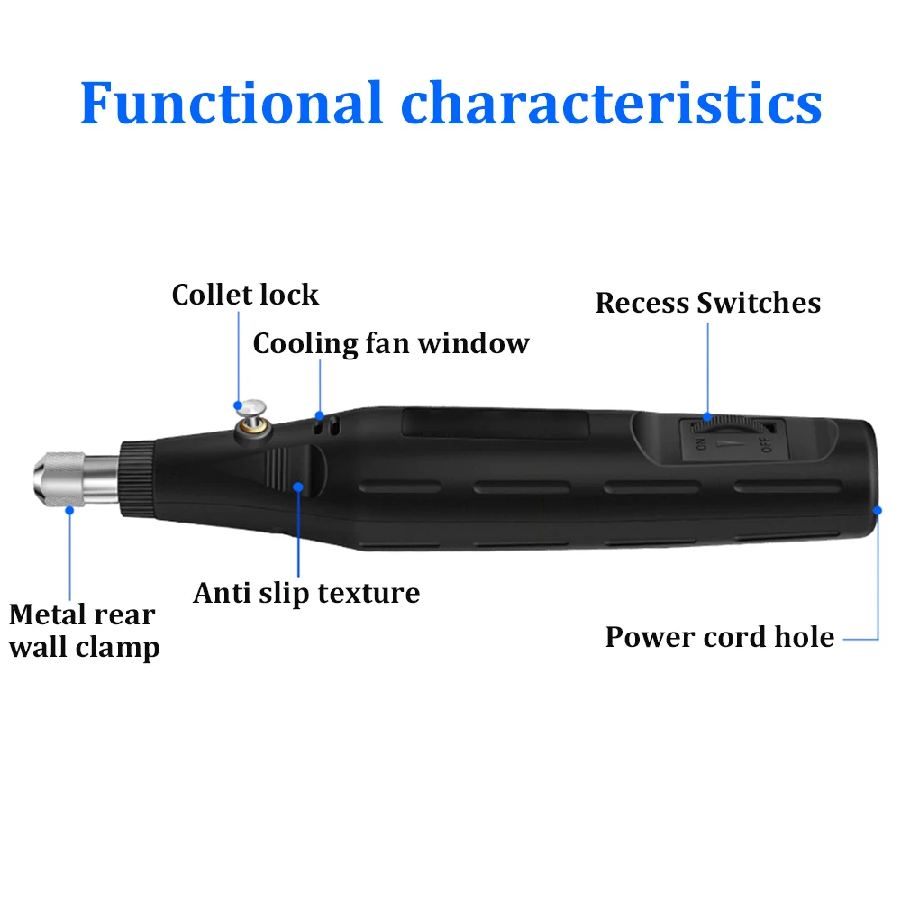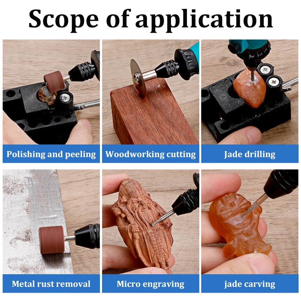 Scope of application: small carving (core carving/egg carving/bone carving/jade carving) auxiliary small grinding/polishing cutting/drilling/trimming/cleaning, etc