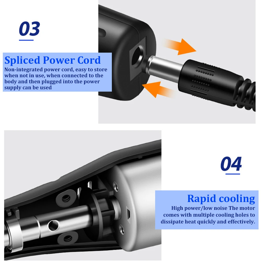 1. High speed custom type: 18000 RPM high-power motor/no burning machine, high speed and strong power performance is more stable and durable.