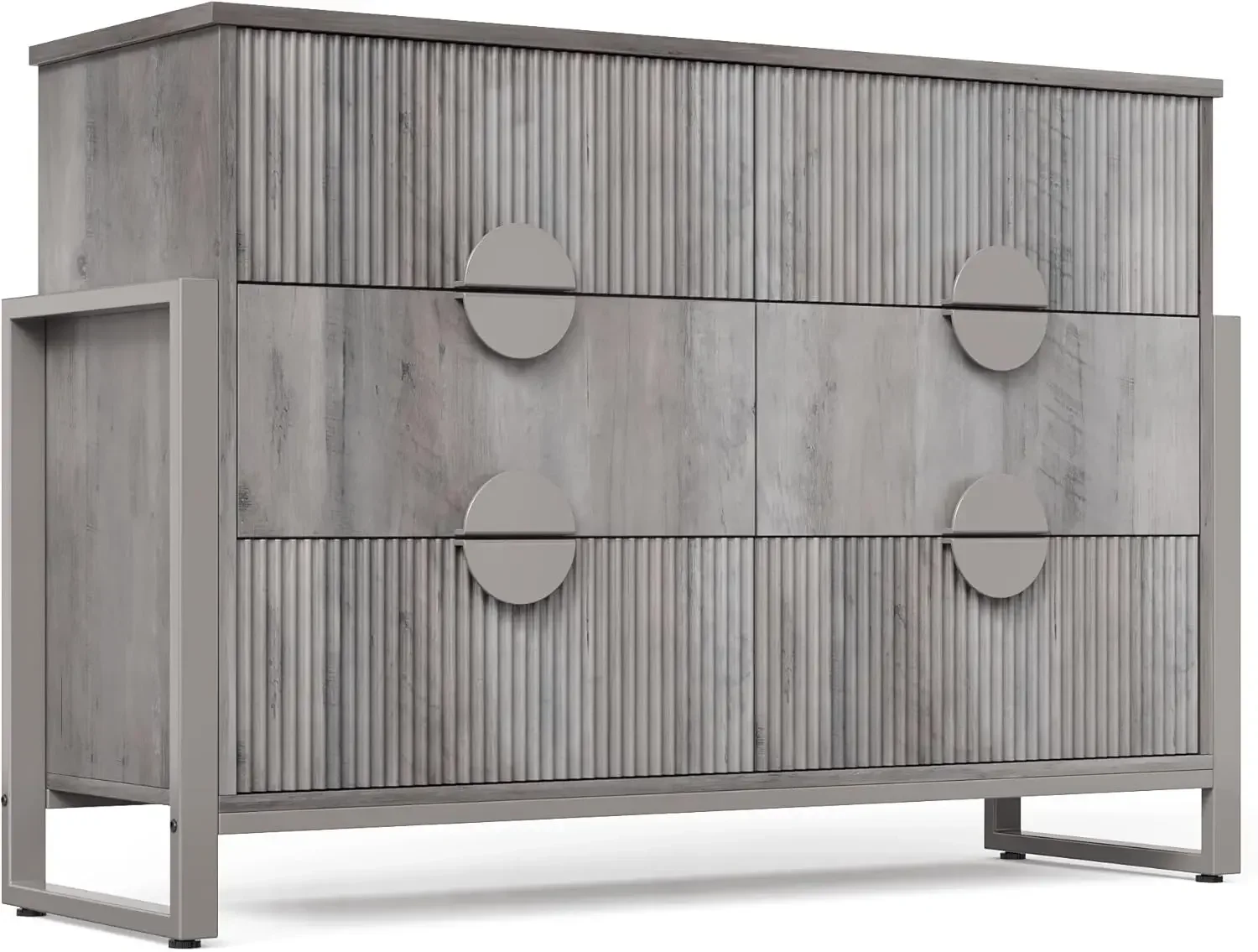 6 Deep Drawer Dresser, Dressers for Bedroom, Chest of Drawers Closet Organizers and Storage Clothes - Easy Pulls Handle, Textured Wood Sticks Border for Bedroom,Livingroom, Hallway, Gray Wash
