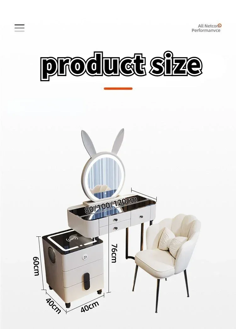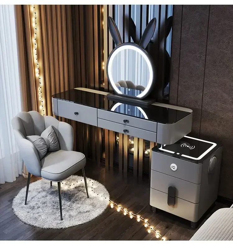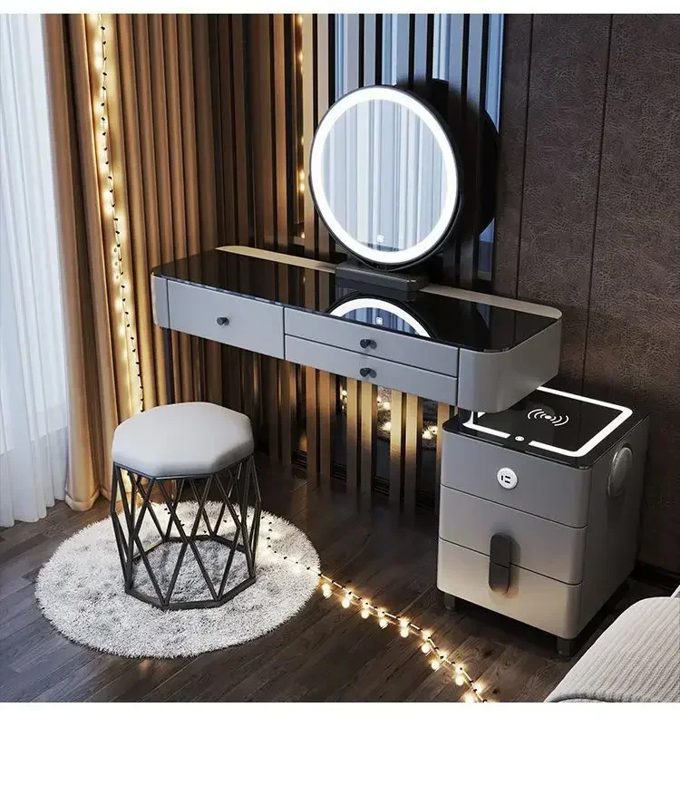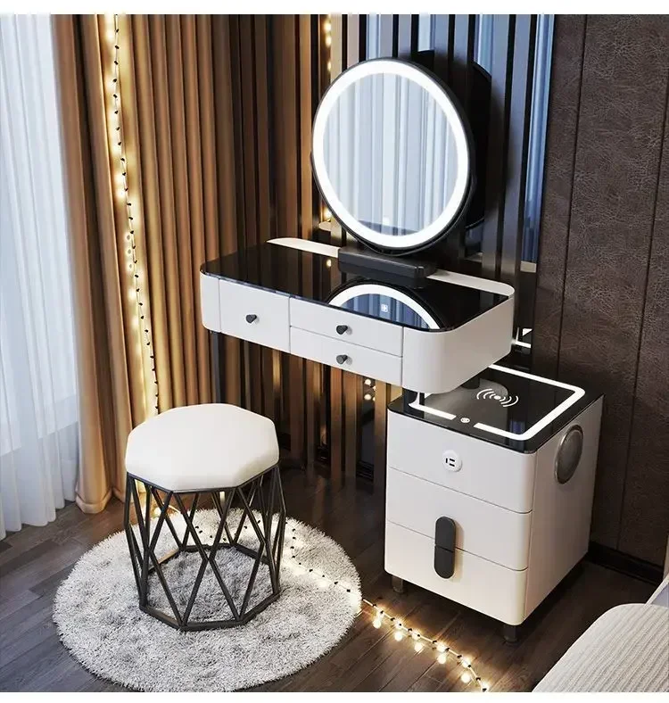 Modern Dressing Table with Smart Wireless Charging Luxury Bedroom Multifunctional Makeup Table with Chair Sound Cloud Led Mirror