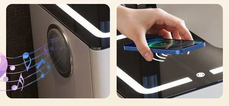 The side cabinet supports Bluetooth speakers and wireless charging and obs charging