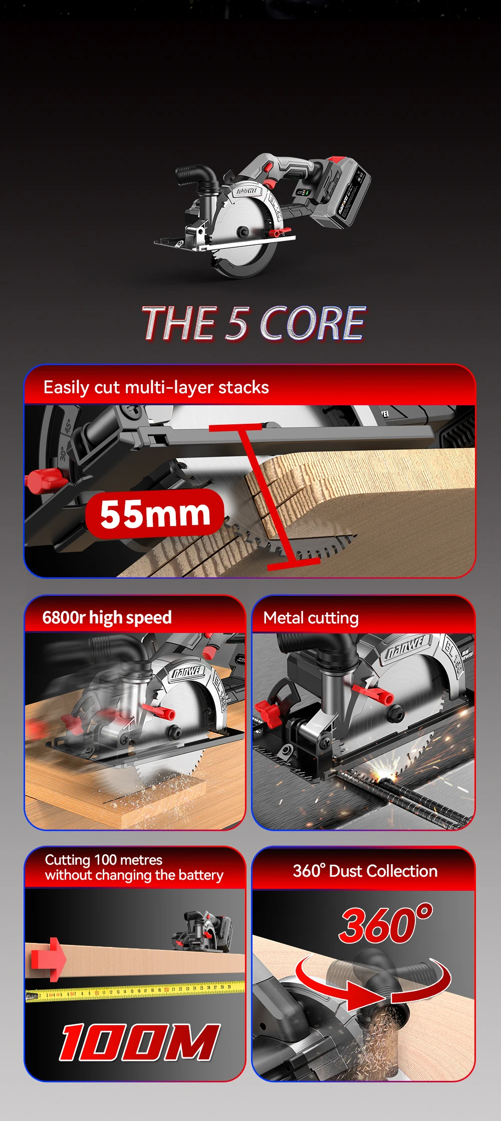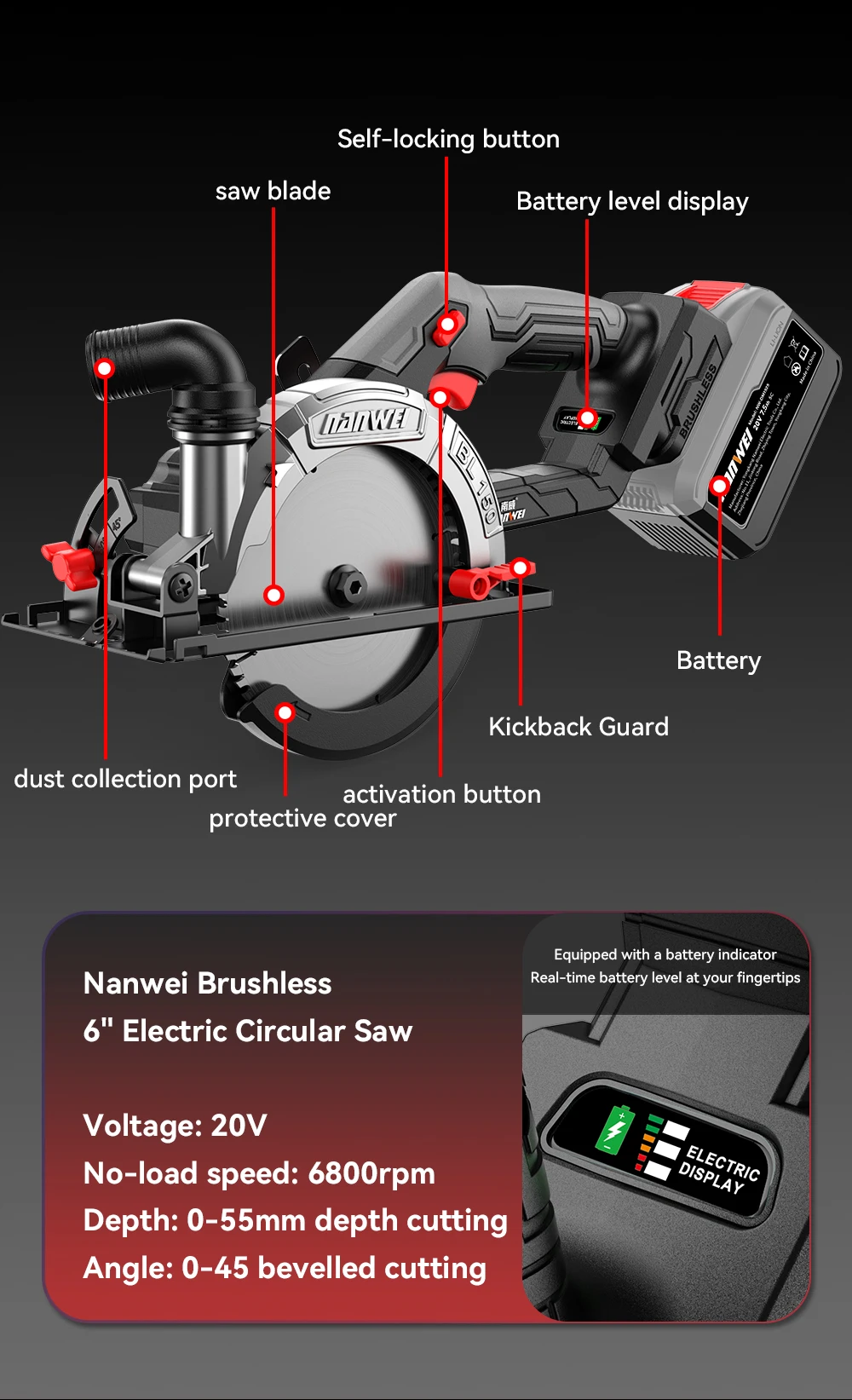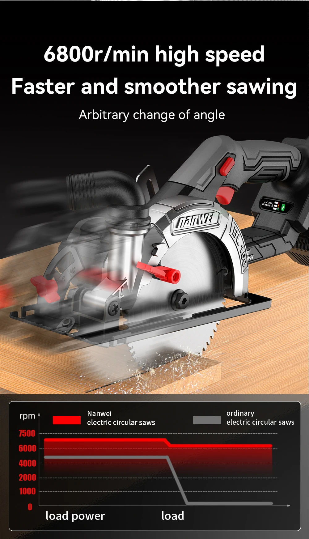 NANWEI 6" cordless brushless circular saw Rechargeable woodworking portable electric saw cutter circular saw