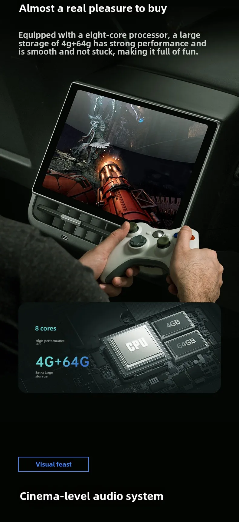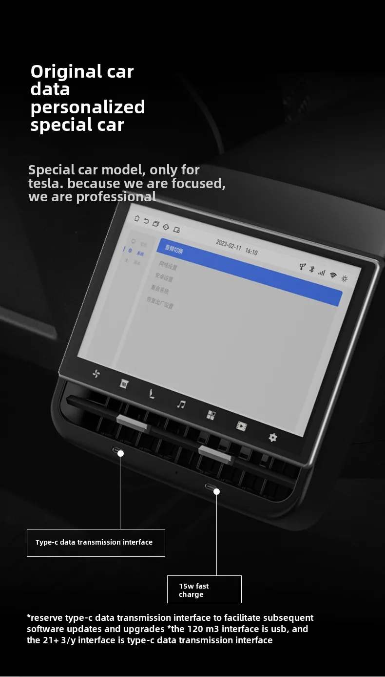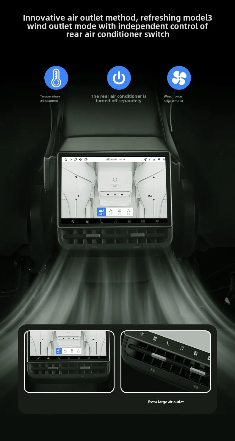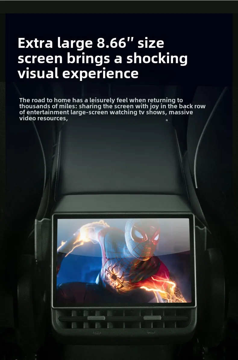 New Style 8.66 Inches Rear Display for Tesla Model Y 3 Android 13 WIFI Entertainment Screen 4G+64G Wireles Carplay Andriod Auto