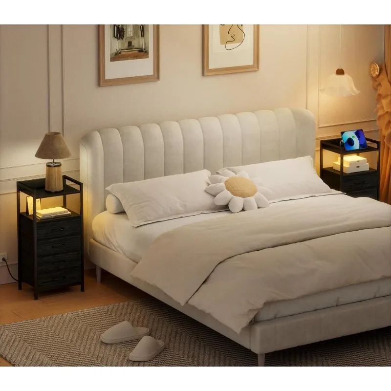 Charging Station: The built-in power outlets provide the ultimate convenience. This bedroom table includes 2 AC outlets and 2 USB ports. You can easily connect and charge your electronic devices, such as smartphones, tablets, or bedside lamps without the need for extra extension cords or searching for available outlets.