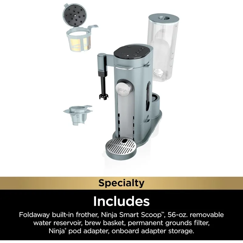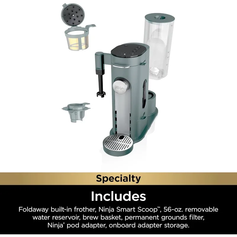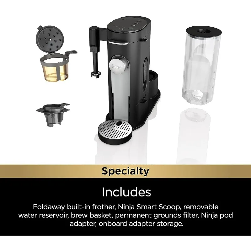 • WHAT'S INCLUDED: Built-in frother, Ninja Scoop, removable brew basket, Ninja pod adapter, permanent filter.