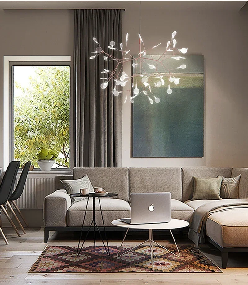 Nordic Circular Living Room, Kitchen Corridor, Postmodern Chandelier Tree Branch Design, Firefly Light LED Light