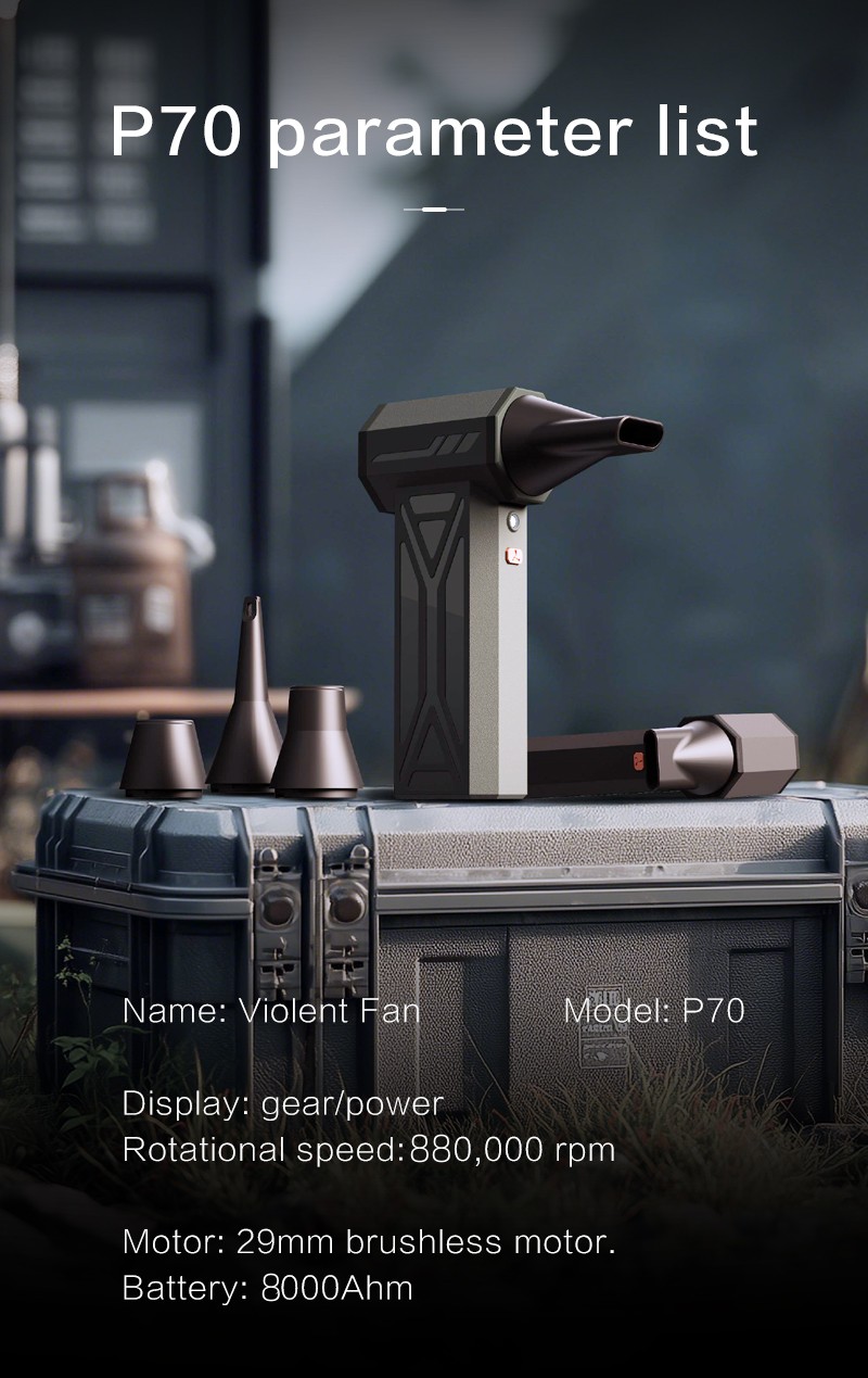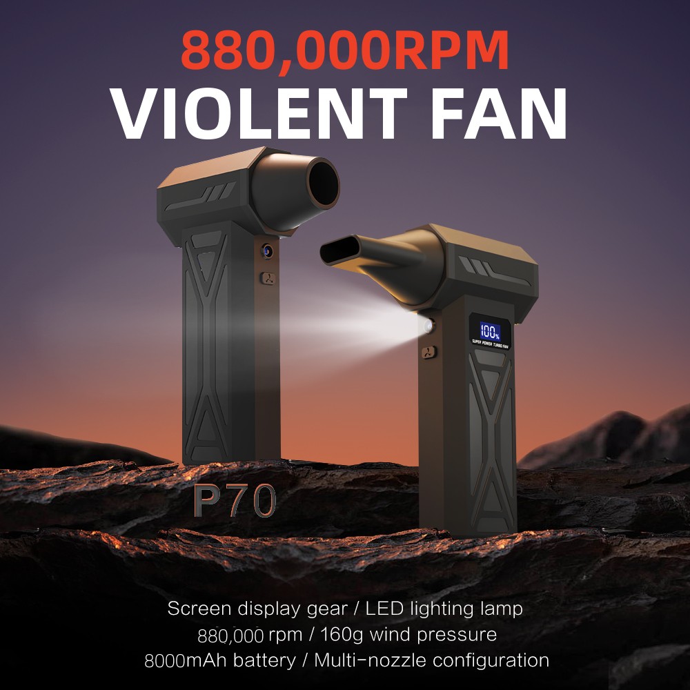 P70 Turbo Fan 160g Wind Pressure Powerful Turbo Air Blower With LED Lights Wireless Dust Blower High Speed Jet Blower Car Vacuum