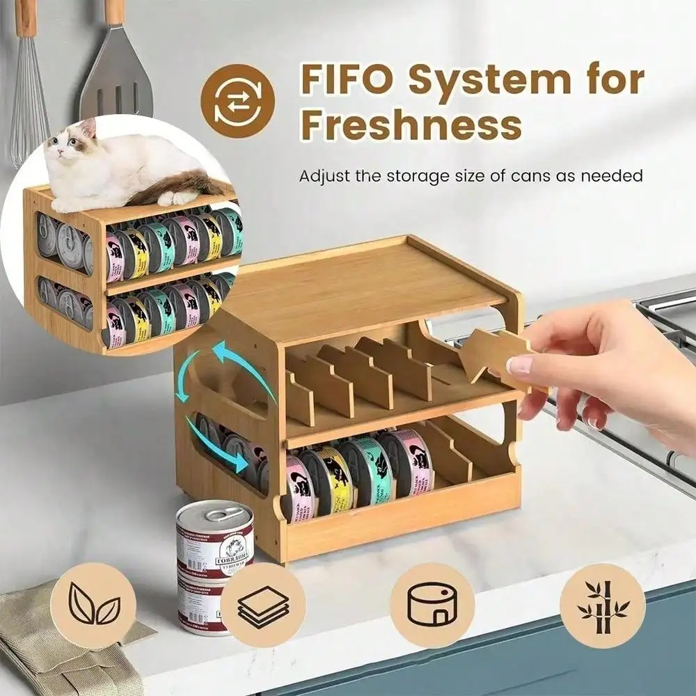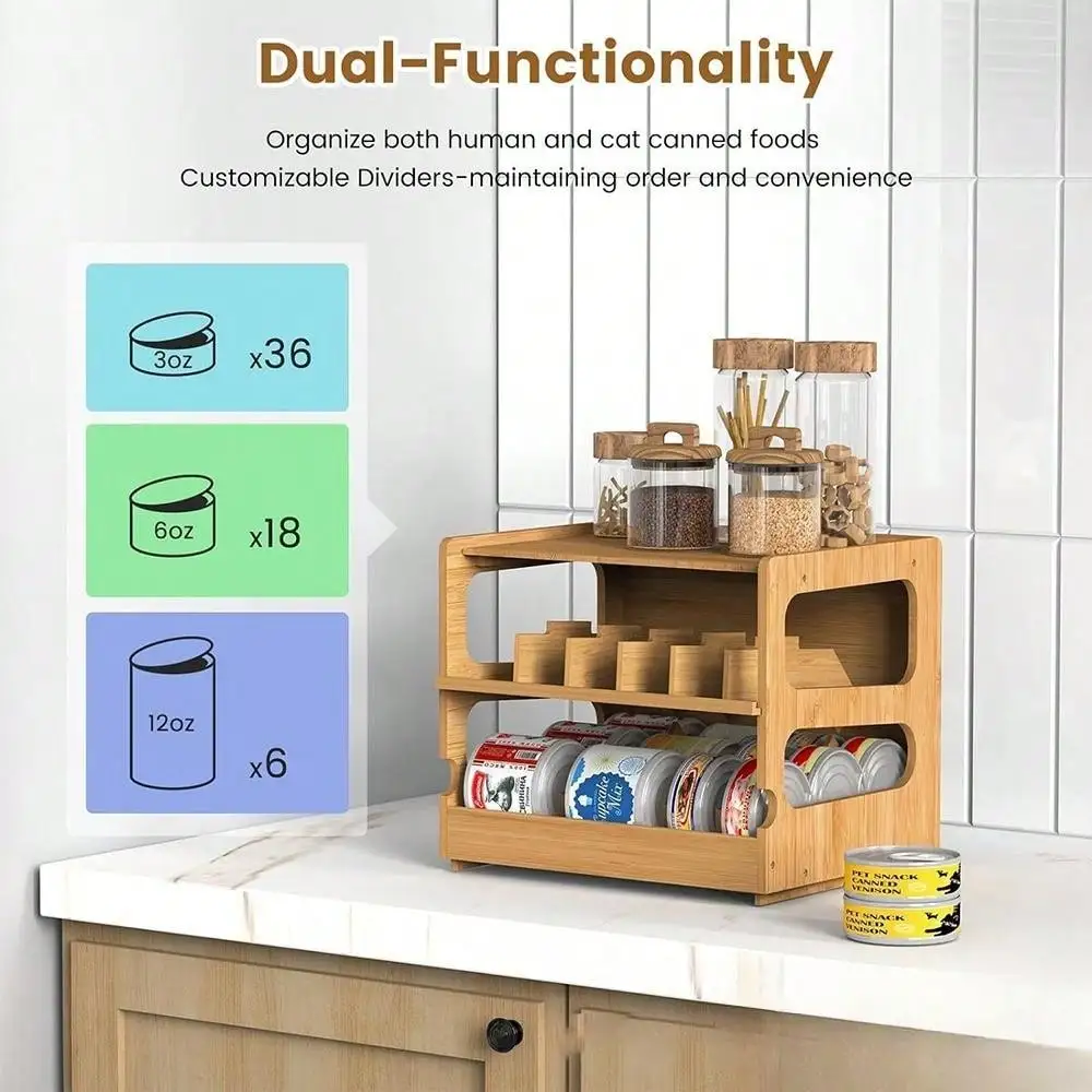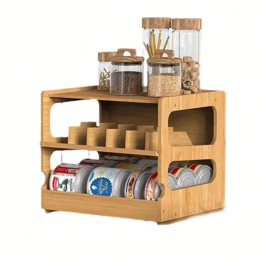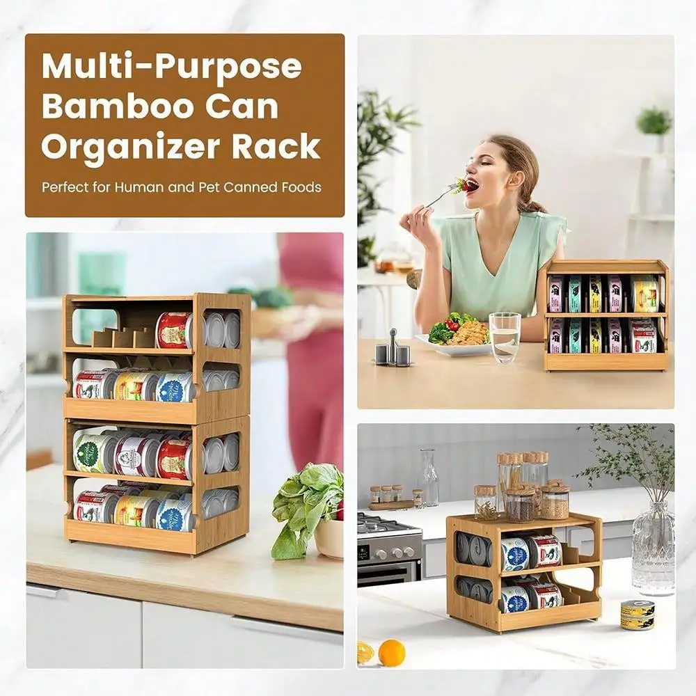 Bamboo Design: Crafted from high-quality Bamboo, this can organizer offers durability and a stylish, natural look that enhances any room decor. Made of natural wood, the texture is clearly visible and the color is uniform. It's known for its strength and durability. It's built to withstand the weight of multiple cans without bending or breaking, ensuring long-lasting use. Stackable for Maximum Space Efficiency: Our organizers are designed to stack securely, allowing you to customize your storage space and keep your pantry neat and organized. Our Bamboo can storage rack fits in your pantry, cupboard, cabinets, and shelves.