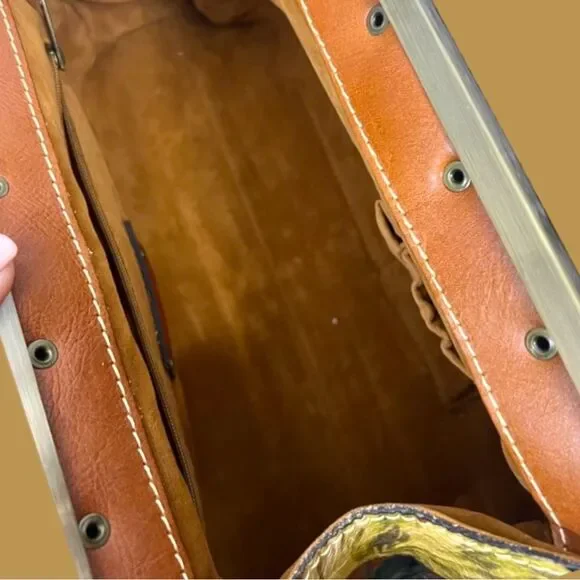 **FREE SHIPPING WITH FULL PRICE PURCHASE**HARD TO FIND RETIRED PRINT-Enlightened Garden, is the perfect fall bag with brass hardware & rich colors of cognac, golden yellow, green, blue. Made of gorgeous full-grain Italian leather, the Ferrara is a vintage-inspired, structured handbag with elegant metal frame hardware and unique fold-over snap closure that adds a touch of timeless style to your wardrobe. Please see pics as part of description. There may be minor wear from use.Style P02118Interior: 1 zip pocket, 2 slip pockets. Faux suede lining, 100% polyesterShoulder strapSignature antique brass hardware, heavy handcrafted stitchingDimensions: 14 3/4"(W) x 7 1/2"(H) x 3"(D)Strap drop: 8 1/2"❤️QUICK SHIPPER. EXPERIENCED & TRUSTED SELLER❤️⭐️Bundle for DISCOUNTS & TO SAVE ON SHIPPING⭐️All items 100% authentic, NWT or EXCELLENT PREOWNED CONDITION unless otherwise stated & come from a clean, smoke free home.