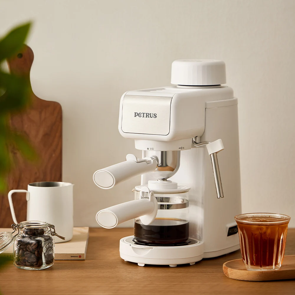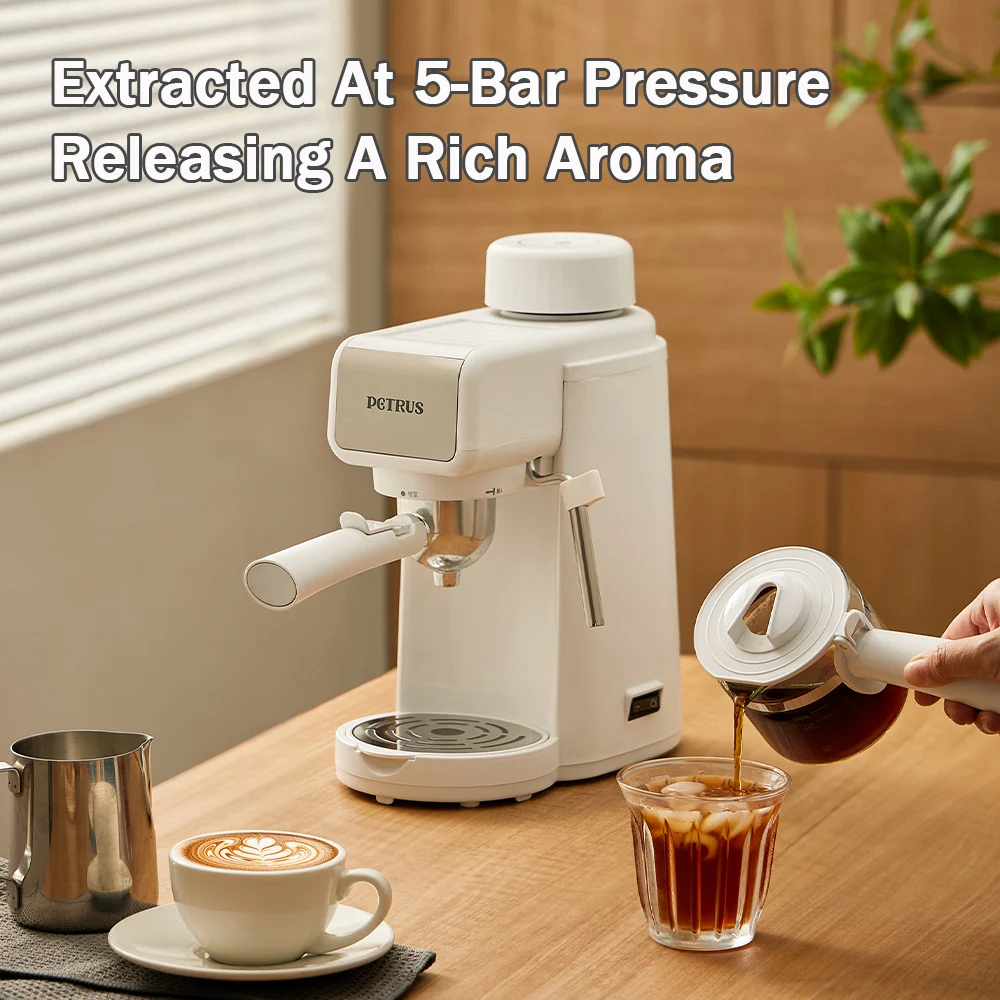 ✔️5 bar pressure, easy-pour glass cup, can serve the amount clearly.