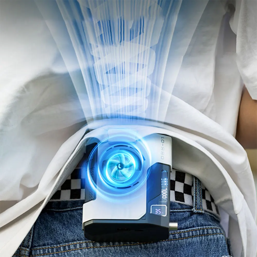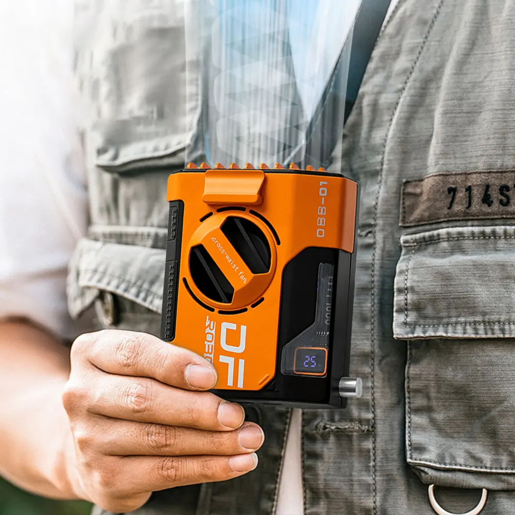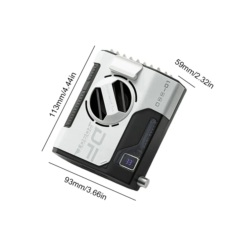 Portable Waist Fan Rechargeable 5 Speeds Outdoor Camping Fan LED Digital Display Personal Body Fan Strong Airflow As Power Bank for Outdoor Jobsite Climbing Hiking