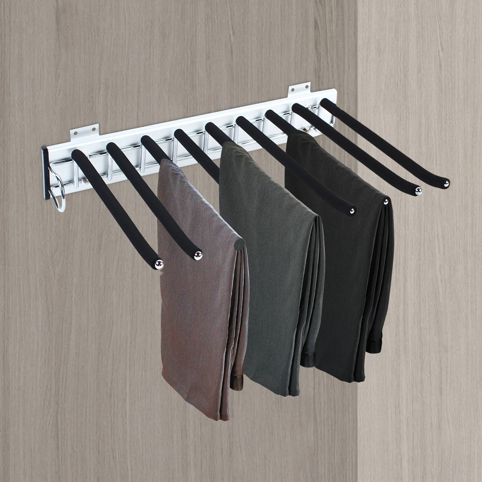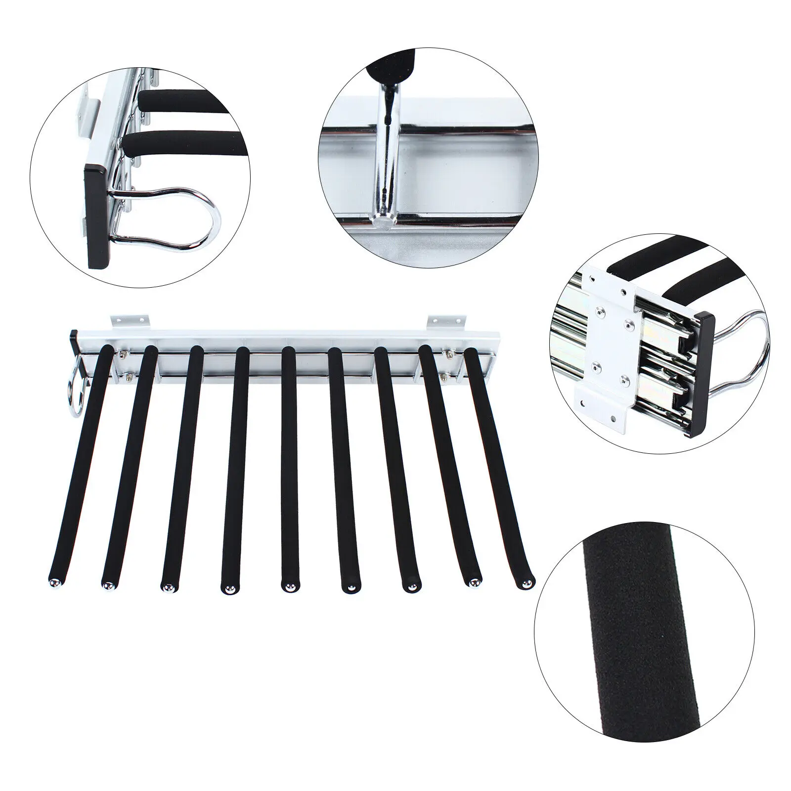 Telescopic Design: Mute three-section rail with double-row ball bearings allows you to easily and smoothly push and pull this item to take your pants and hide it in your wardrobe. You can hide it in your wardrobe while taking full advantage of the unused wardrobe wall.