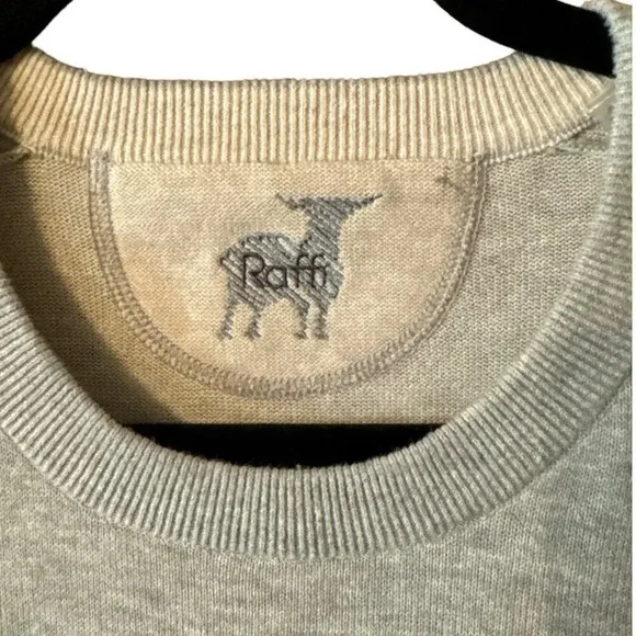 Raffi 100% Cotton Crew Neck Sweater cream L stripes on sleeve preppy luxe