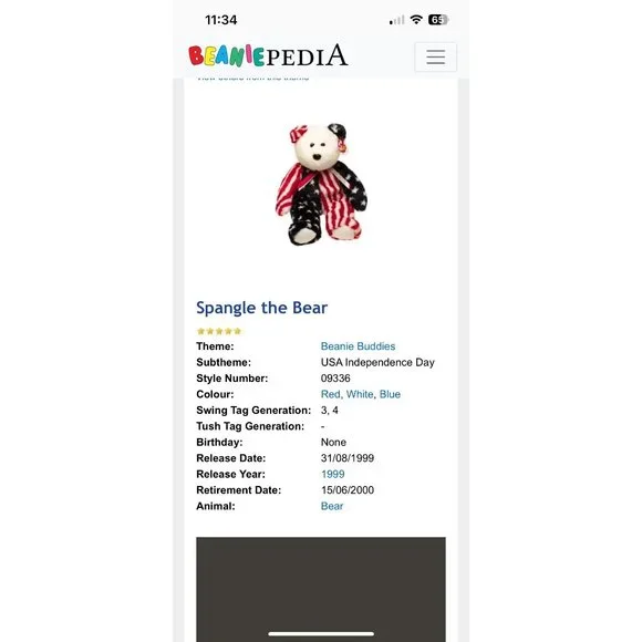 RARE Ty Beanie Baby Spangle The Bear McDonalds 1999 in Box Sealed Never OpenedCondition: Pre-Owned Good