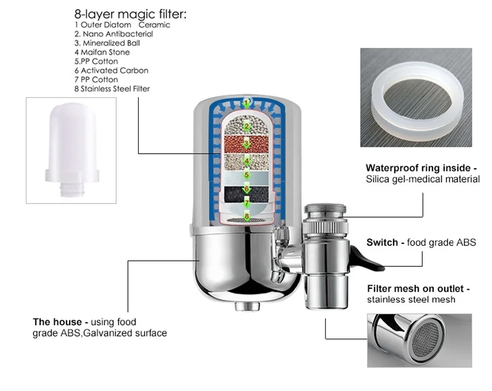 8 Layer Purification Ceramics tap water processing system Tap Water Purifier for 6L Household Kitchen Removal Rust Bacteria
