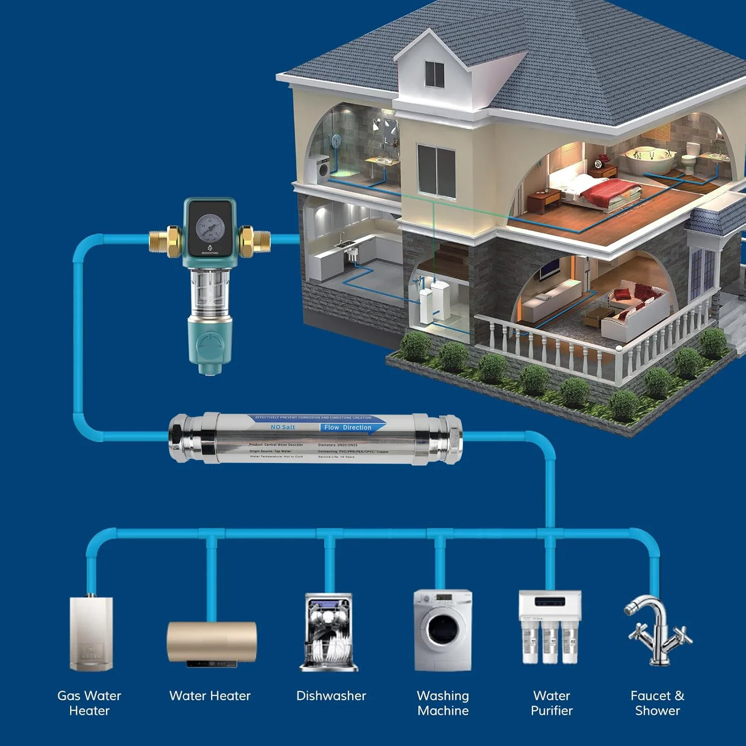 ●Suitable for Whole house scale inhibition&descaler, Reduces 86% creation of Limescale on water supply elements.Extends life and efficiency ( water heater,shower heads, Boiler, kettle of home appliances, pipework, valves, taps, mixers)