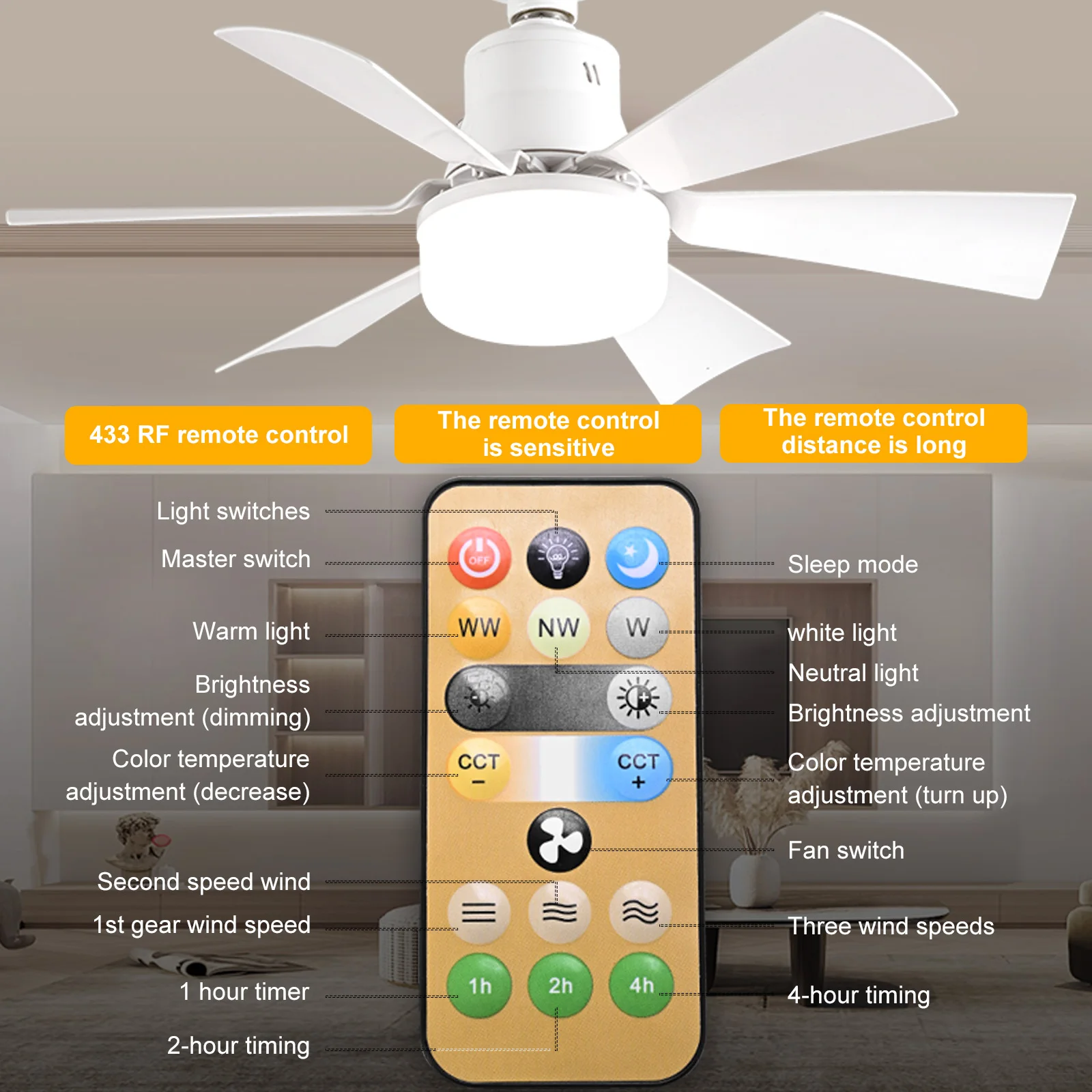 ![]() Screw in Ceiling Fan in Light Socket with Remote Ceiling Fan with Light with Extender & 6 Blades for Bedroom Kitchen Living Room Features: