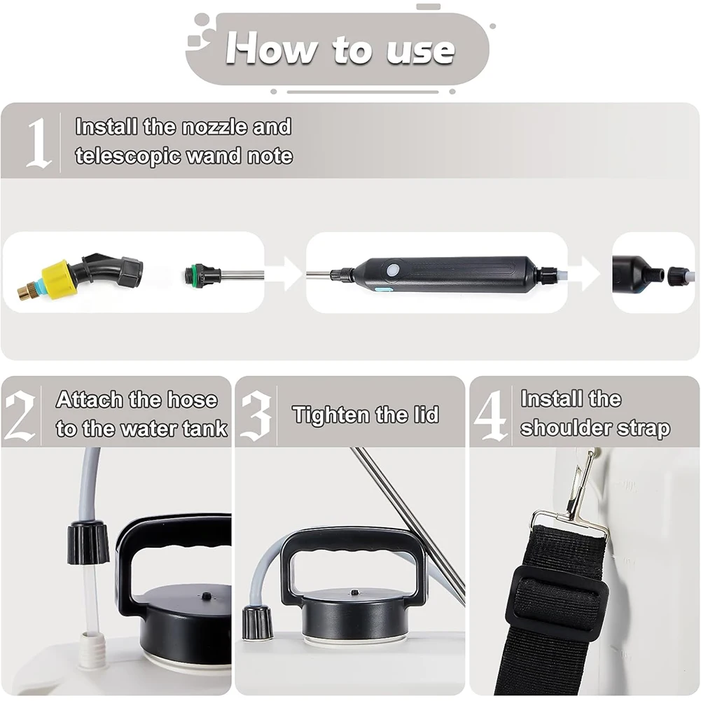 2. Versatile Multi-Directional Nozzle: Equipped with a multi-directional nozzle, this electric backpack sprayer allows for easy watering from various angles through simple rotation. Its energy-efficient design enhances your gardening experience by making watering tasks easier and more efficient.