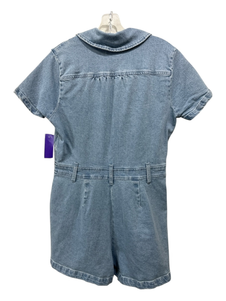 Show Me Your Mumu Size L Light Wash Cotton Blend Denim Front Zip Cuffed Romper