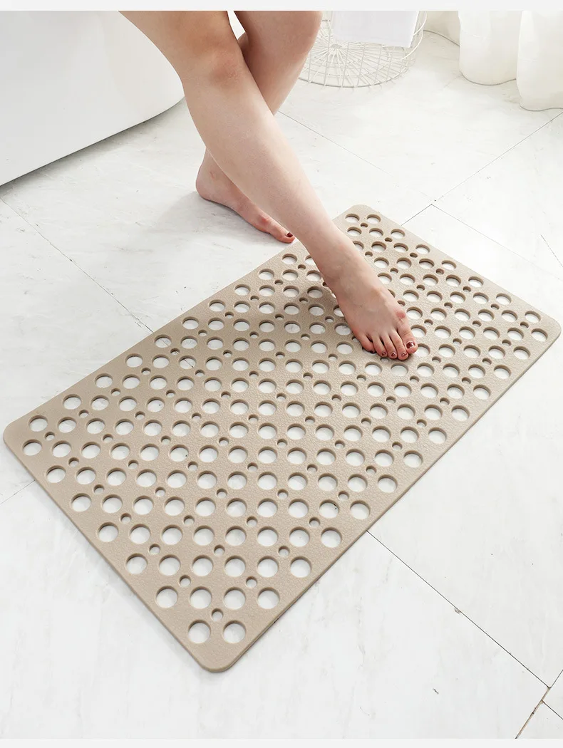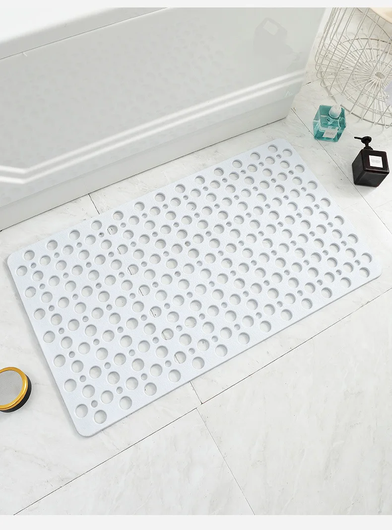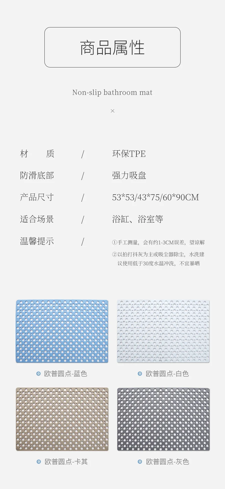 Instructions for use: First lay the bath mat on the slippery floor or inside the bathtub, and then press the surface of the mat to discharge the air in the suction cup. The suction cup firmly sticks to the ground. Make sure the mat is no longer moving, you can stand on it and use it.
