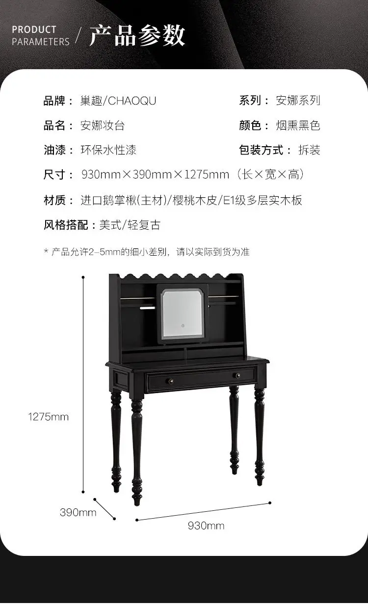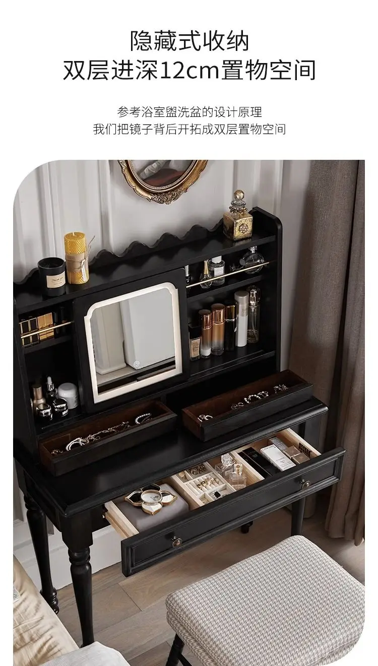 Small Black Dressing Table Mirror Modern Minimal Living Room Dressing Table Storage Makeup Comoda Pra Quarto Bedroom Furniture