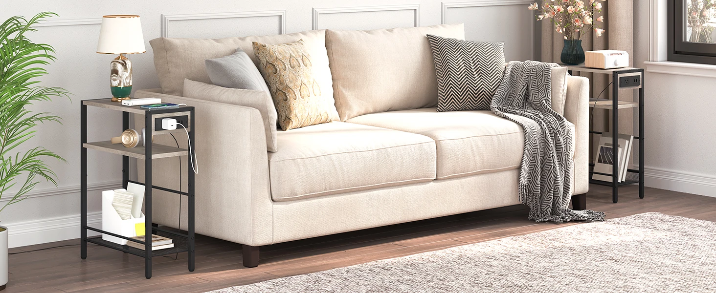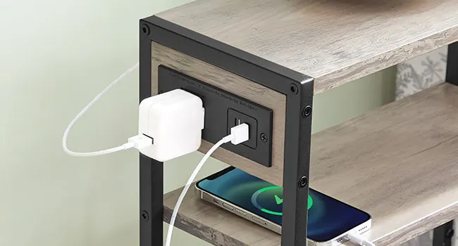 1. With Power Socket: The side table features a practical power strip with 1 outlet and 2 USB ports. You can charge your devices like phones and desk lamps without being limited by wall sockets or having to search for charging cables or moving furniture