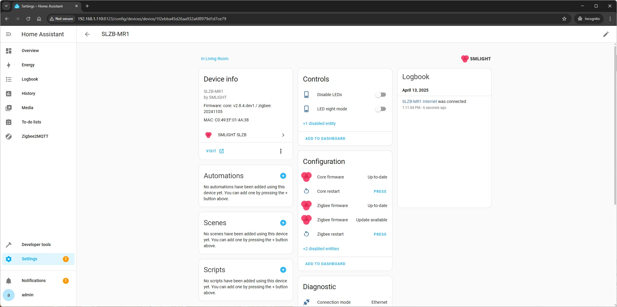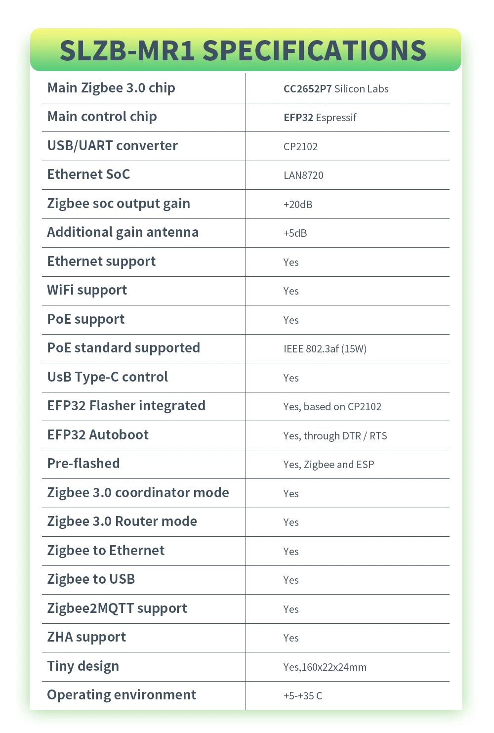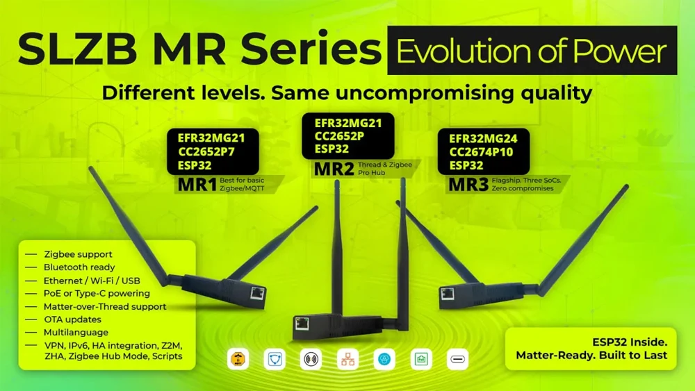 - Compatible with SLZB-OS versions 2.6.8dev26 and up for MR1 and 2.8.7 and up for MR3.