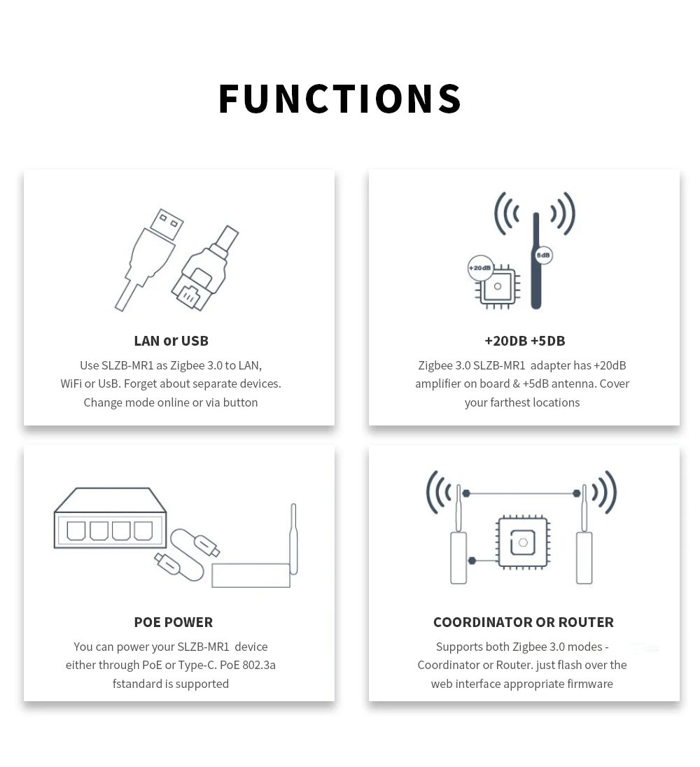 - Ideal for Zigbee networks, works perfect also with Thread networks.