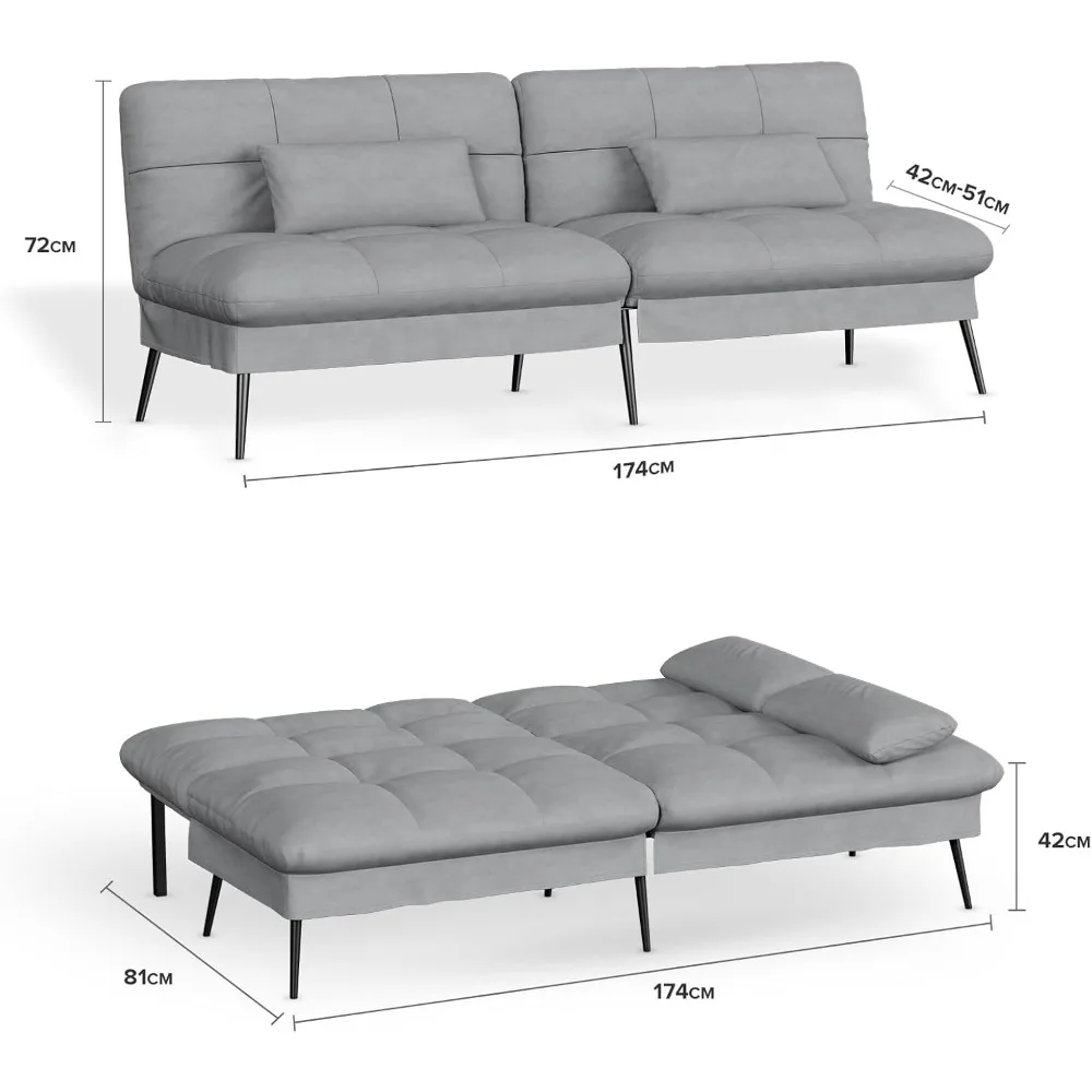 【Selection of Good Materials】This 3 seater sofa bed is made of cotton velvet, close to the skin, soft, friendly to the health of babies and pets. The size of the sofa - 174 x 51 x 72 cm; The size of the sofa bed - 174 x 81 x 42 cm.