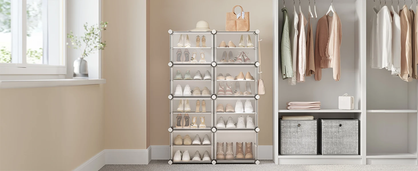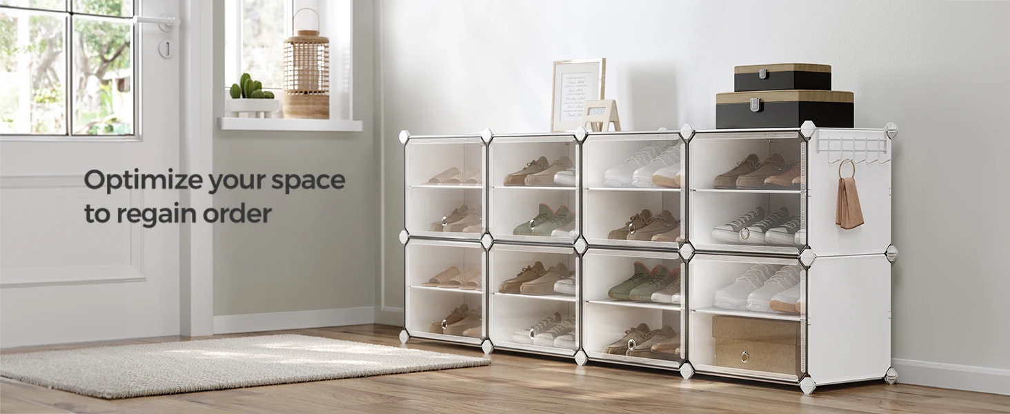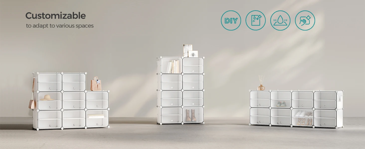 Customizable Configuration: Configure the unit with 2 or 3 separate rows, or divide it into smaller shelf units, adapting it to your organizational needs in entryways, bathrooms, or any desired space.