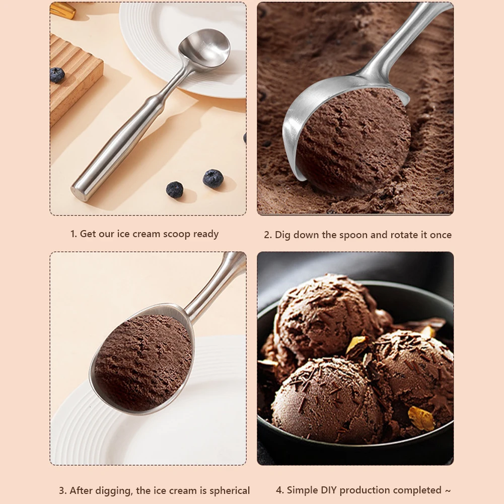 4. Perfectly Shaped Scoops: The cookie spoon's deep, round head is designed to create perfectly shaped ice cream balls with ease. Its non-stick surface ensures smooth release, making it ideal for scooping ice cream, watermelon, cantaloupe, and more.