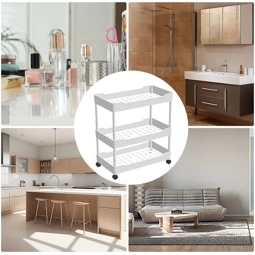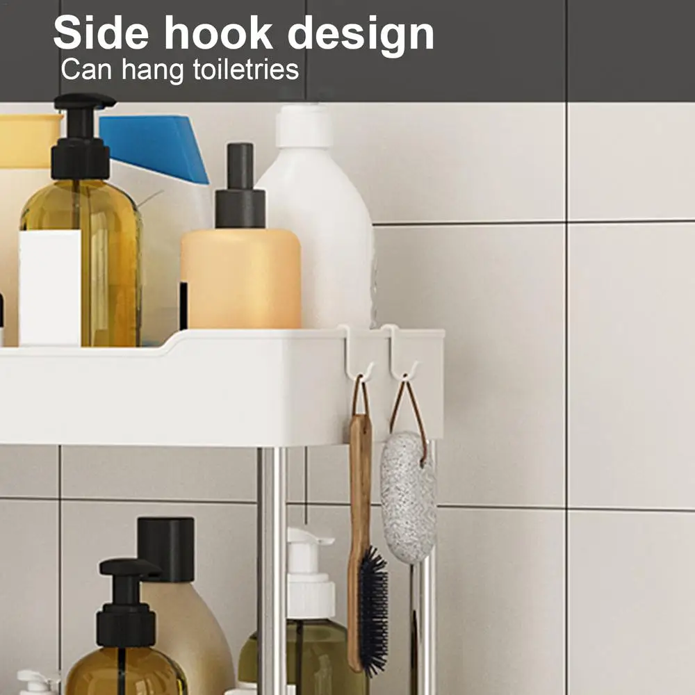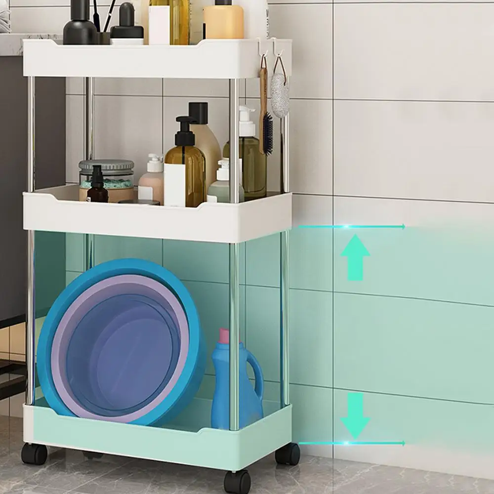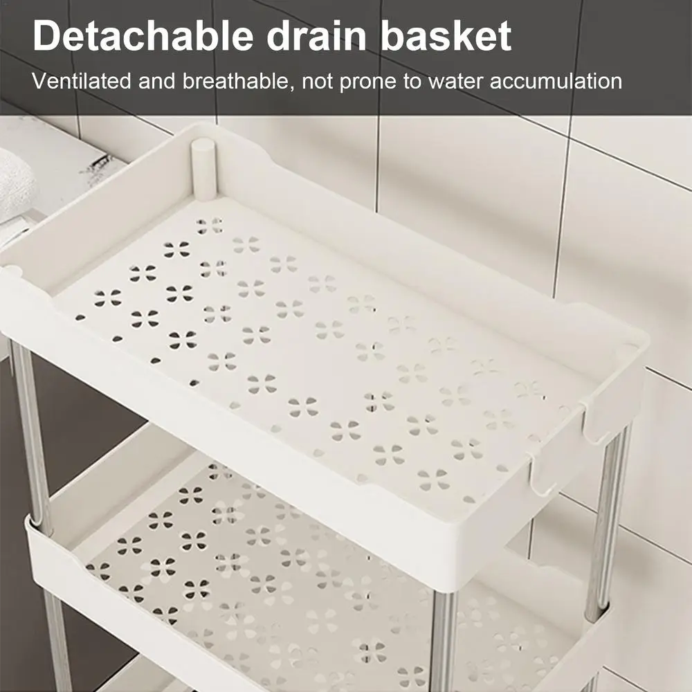 2.Efficient Organization: By incorporating an extra hook design, this Rolling Storage Cart allows you to suspend some small objects. The hollow compartments come with a unique ventilation and drainage system, keeping everything dry and clean.