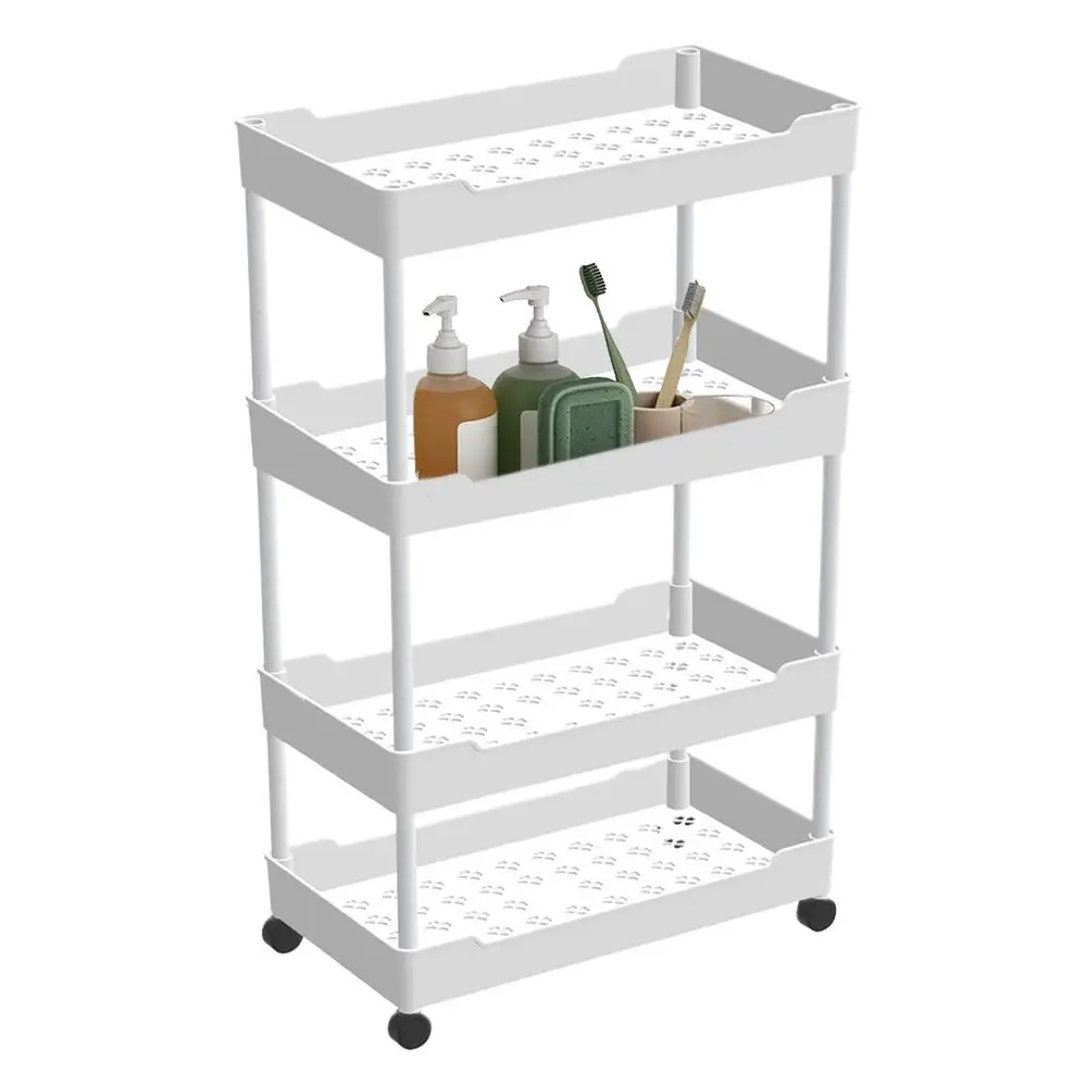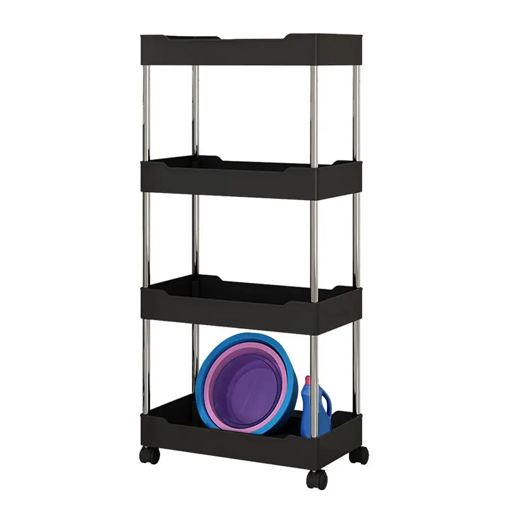 3.Adjustable Organization: Arrange your belongings with ease using this rolling storage cart. Featuring 3 or 4 adjustable tiers, this space-saving solution provides a rational use of space depending on your storage needs, promoting a clean and tidy home.