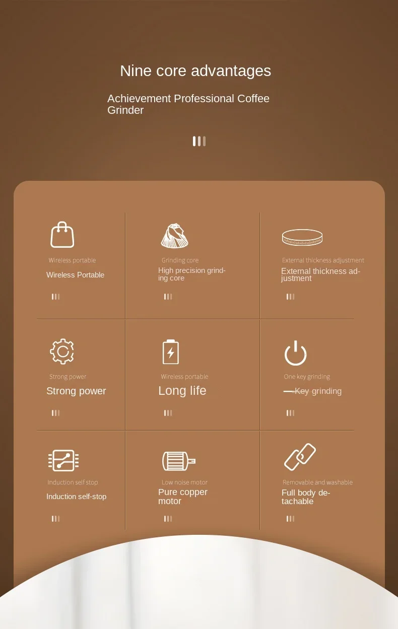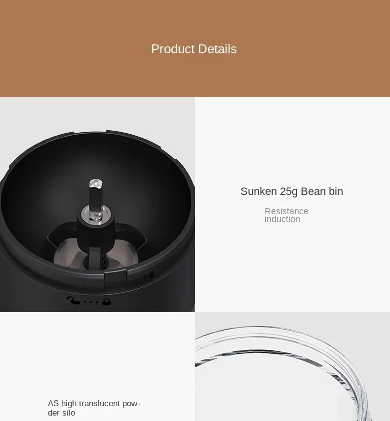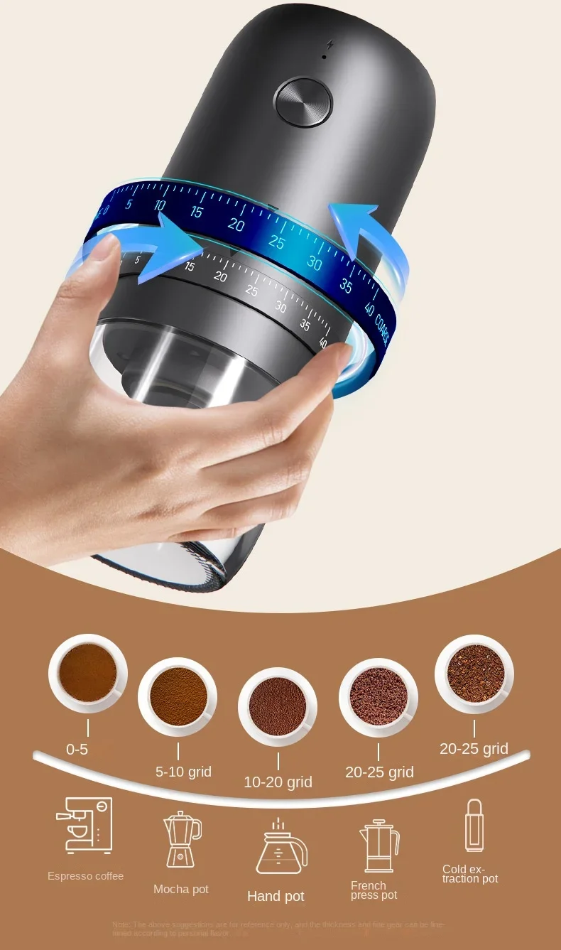 TINSOL 1800mAh Electric Coffee Bean Grinder 40 Speed External Adjustable Home Rechargeable Grinder Convenient Home Coffee Maker