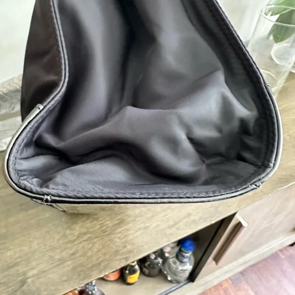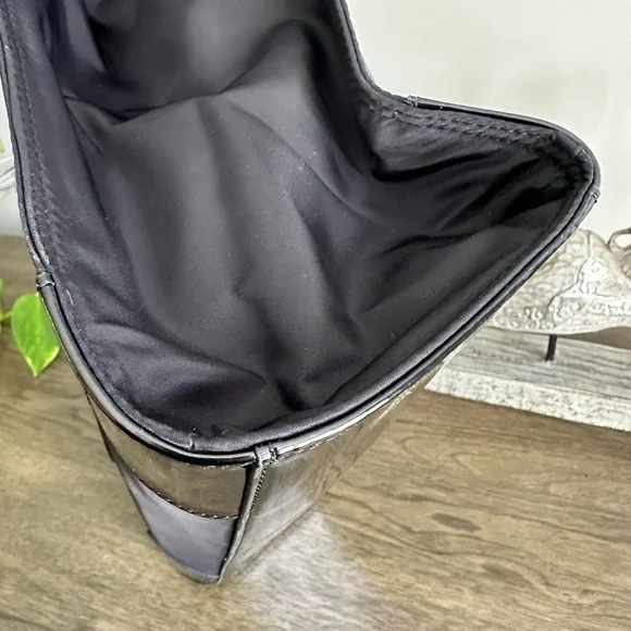 A perennial favorite, the Ella Tote Bag is made of durable recycled nylon with patent trim. Ideal for every day and getaways, it has a roomy interior for all your essentials.Height: 13" (33cm); length: 17.1" (43.5cm); depth: 5.1" (13cm)Fits a laptop up to 15"Outer shell: 100% recycled nylon; faux leather trimLining: 100% recycled polyesterBridge with hidden magnetic snap closure; snaps on gussetsTop handles with 9.1" (23cm) drop1 hidden exterior pocket on logo patch, 1 interior front wall slit pocket, 1 interior back wall zipper pocket