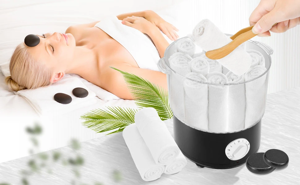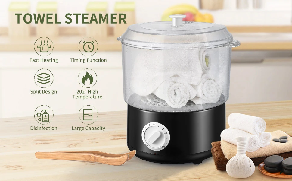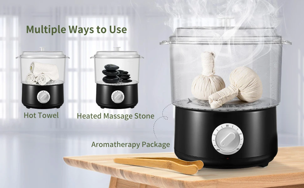 The towel steamer can heat towels, massage stones, incense bags and other products. Please pick up the hot towel with a clip to avoid burns.