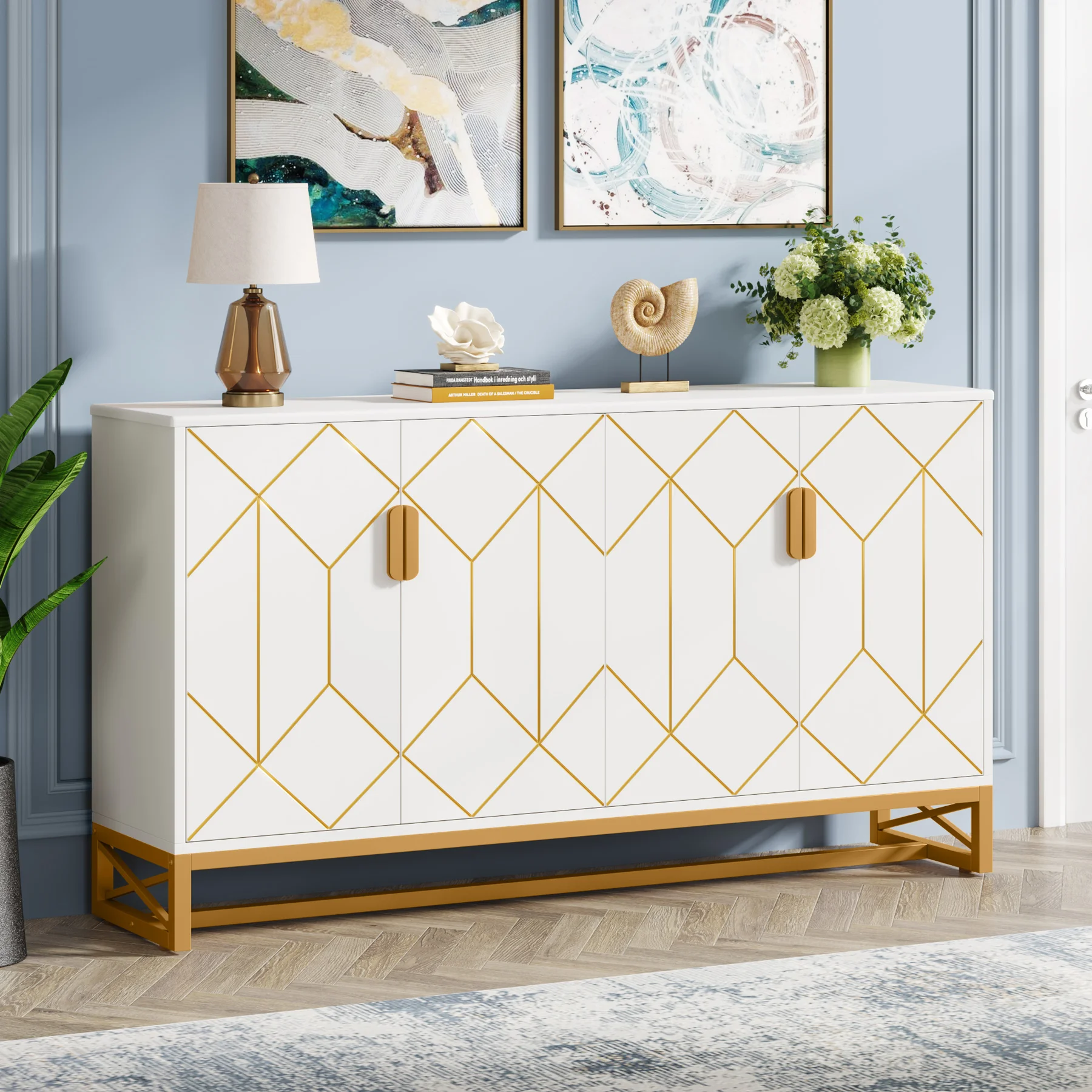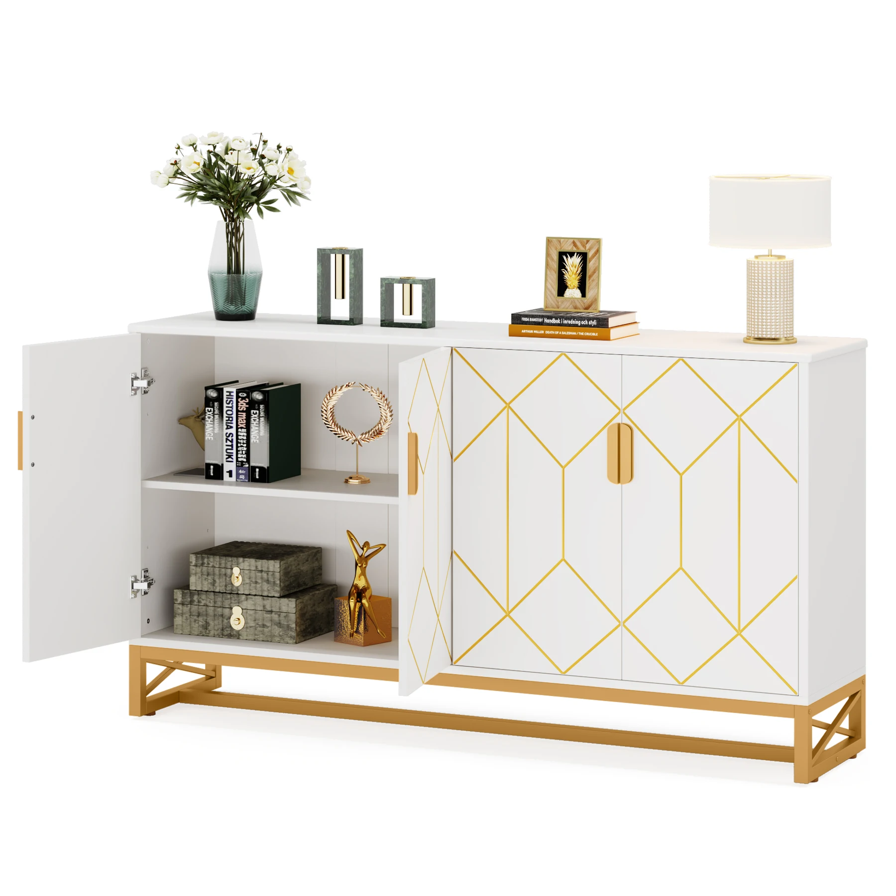 [ Luxury and Exquisite Design ] - The white buffet cabinet with storage is designed to bring a touch of modern chic to your home decor with its stunning white and gold modern design. With its stylish and modern design, it can fit in with almost any decor style and add a touch of luxury and sophistication to your home.